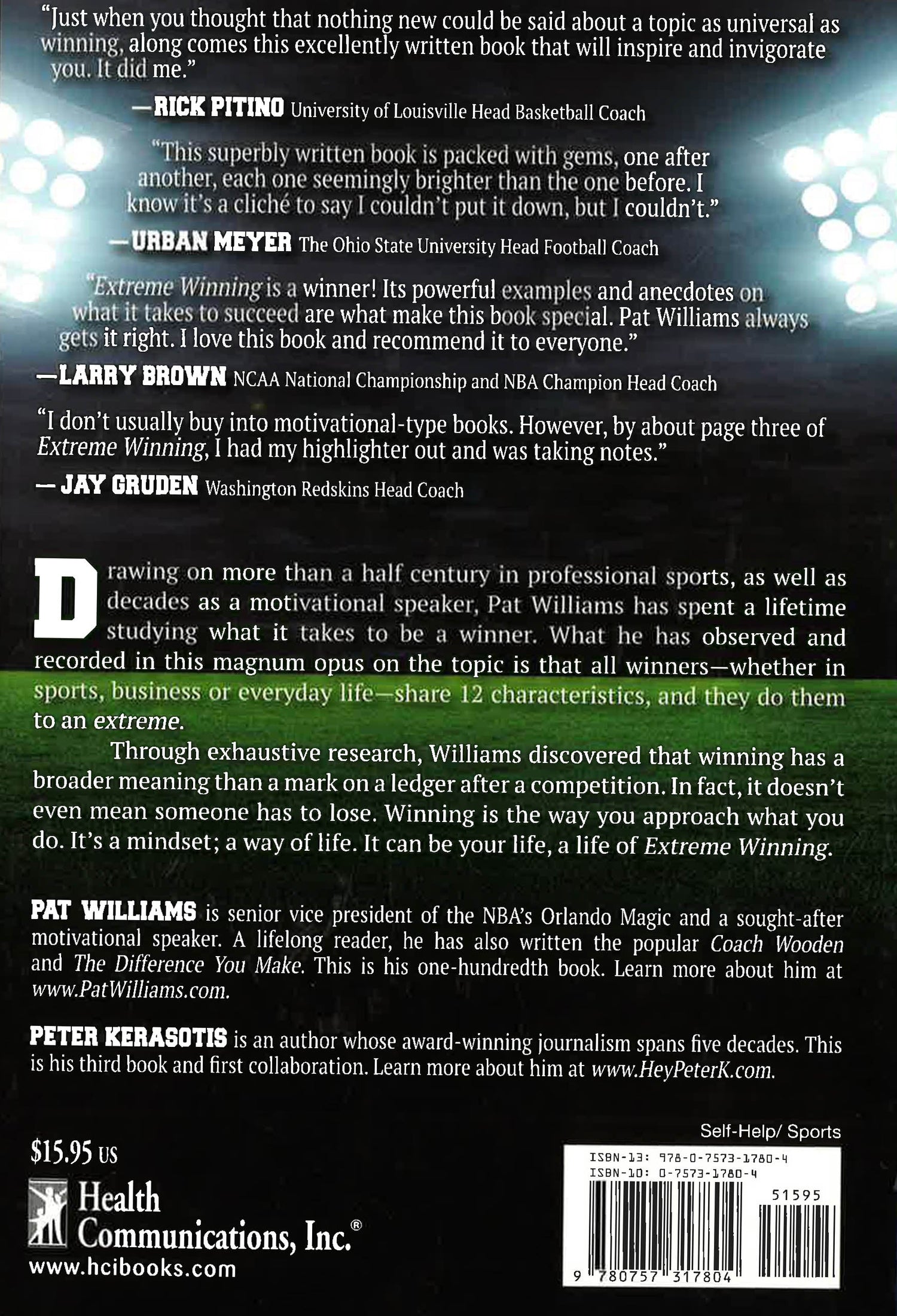 Drawing on more than a half century in professional sports, as well as decades as a motivational speaker, Pat Williams has spent a lifetime researching what it takes to be a winner. What he has observed and recorded in this magnum opus on the topic is that all winners--whether in sports, business or everyday life--share 12 characteristics, and they do them to an extreme. Through exhaustive research, Williams discovered that winning has a broader meaning than a mark on a ledger after a competition. In fact, it doesn't even mean someone has to lose. Winning is the way you approach what you do. It's a mindset; a way of life. It can be your life, a life of Extreme Winning.