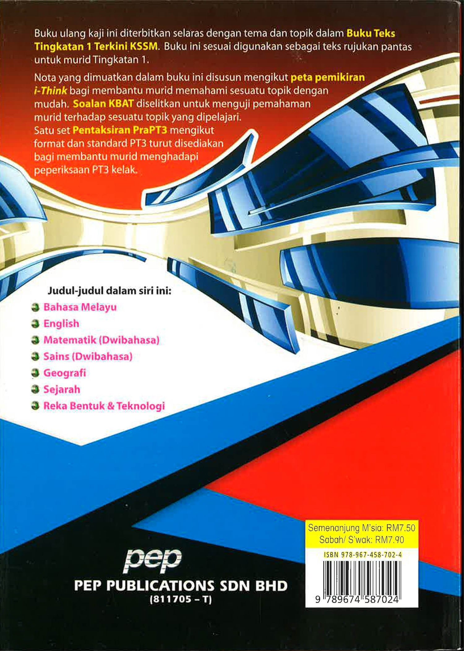 Buku ulangkaji ini diterbitkan selaras dengan tema dan topik dalam Buku Teks Tingkatan 1 Terkini KSSM. Buku ini sesuai digunakan sebagai teks rujukan pantas untuk murid Tingkatan 1. Nota yang dimuatkan dalam buku ini disusun mengikut peta pemikiran i-Think bagi membantu murid memahami sesuatu topik dengan mudah. Soalan KBAT diselitkan untuk menguji pemahaman murid terhadap sesuatu topik yang dipelajari. Satu set PentaksiranPraPT3 mengikut format dan standard PT3 turut disediakan bagi membantu murid menghadapi peperiksaan PT3 kelak.