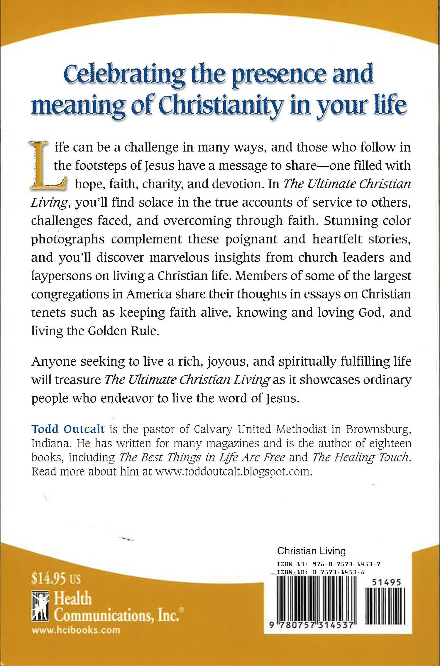 Celebrating the presence and meaning of Christianity in your life Life can be a challenge in many ways, and those who follow in the footsteps of Jesus have a message to share--one filled with hope, faith, charity, and devotion. In The Ultimate Christian Living, you'll find solace in the true accounts of service to others, challenges faced, and overcoming through faith. Stunning color photographs complement these poignant and heartfelt stories, and you'll discover marvelous insights from church leaders and laypersons on living a Christian life. Members of some of the largest congregations in America share their thoughts in essays on Christian tenets such as keeping faith alive, knowing and loving God, and living the Golden Rule. Anyone seeking to live a rich, joyous, and spiritually fulfilling life will treasure The Ultimate Christian Living as it showcases ordinary people who endeavor to live the word of Jesus.