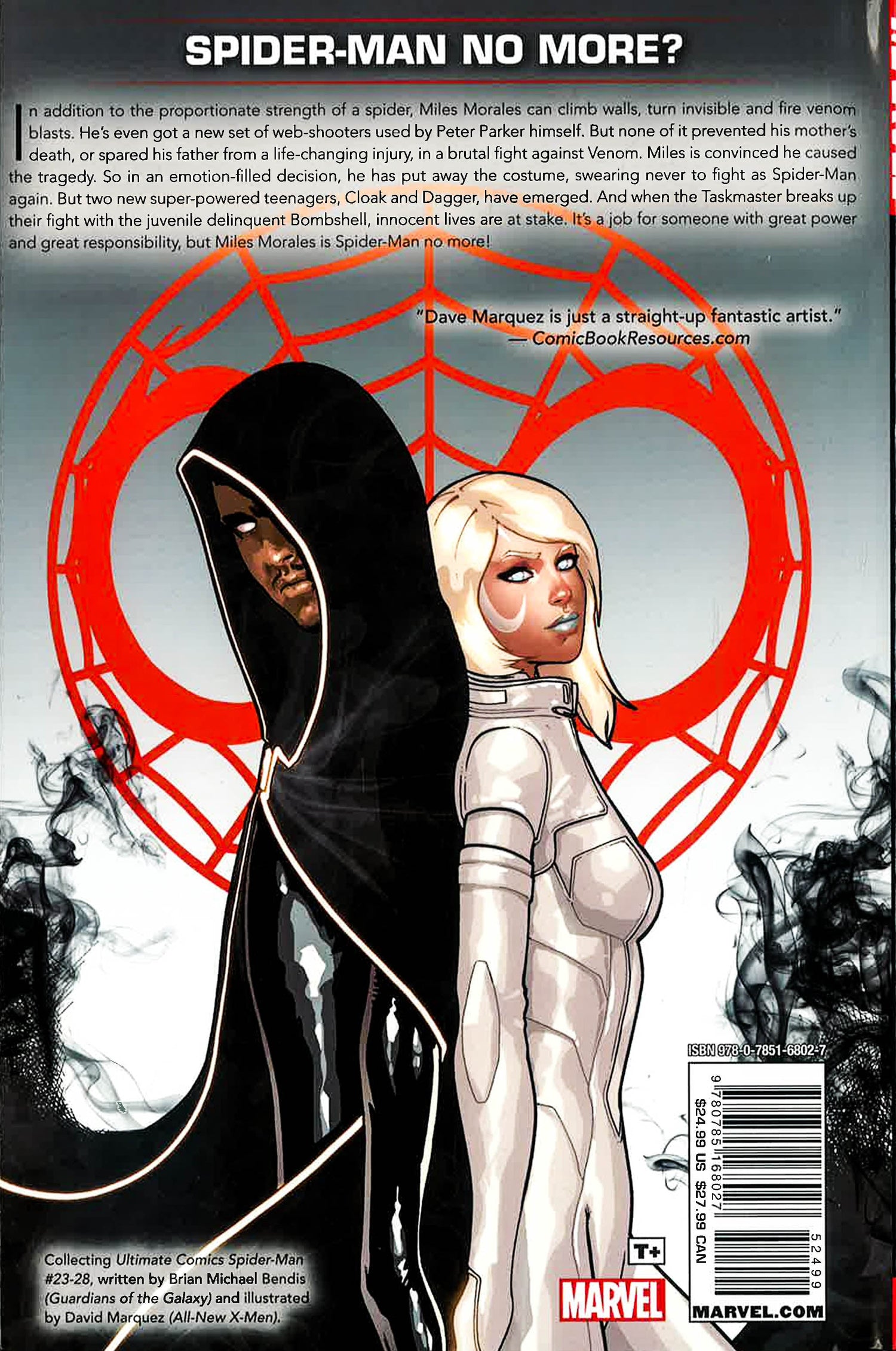 Bombshell is back, and young heroes are debuting all across the city - including Cloak & Dagger and Ultimate Power Pack! But can Miles continue on being Spider-Man after everything that's happened, or will tragedy force him to quit? Cloak & Dagger try to bring Miles back into the super hero fold, but when Miles comes face-to-face with the evil of Roxxon, he makes his final decision. Roxxon created Venom, and because of Venom, Miles' mother died. Now Miles will unleash hell. But will even Cloak, Dagger, Bombshell and Spider-Woman be enough to help him take Roxxon down? The first chapter in the Miles Morales saga ends with a bang as Miles discovers one of the big secrets of his origin!