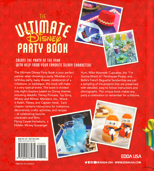 The Ultimate Disney Party Book is your perfect partner when throwing a party. Whether it's a birthday party, baby shower, celebration of a milestone, or barbeque, this book will make it a very special event. The book is divided into eight chapters based on Disney themes, including Aladdin, Disney Princesses, Toy Story, Mickey and Minnie, Monsters, Inc., Wreck-it Ralph, Planes, and Captain Hook. Each chapter contains instructions for invitations, decorations, crafts, activities, and recipes -- all celebrating favorite characters and films