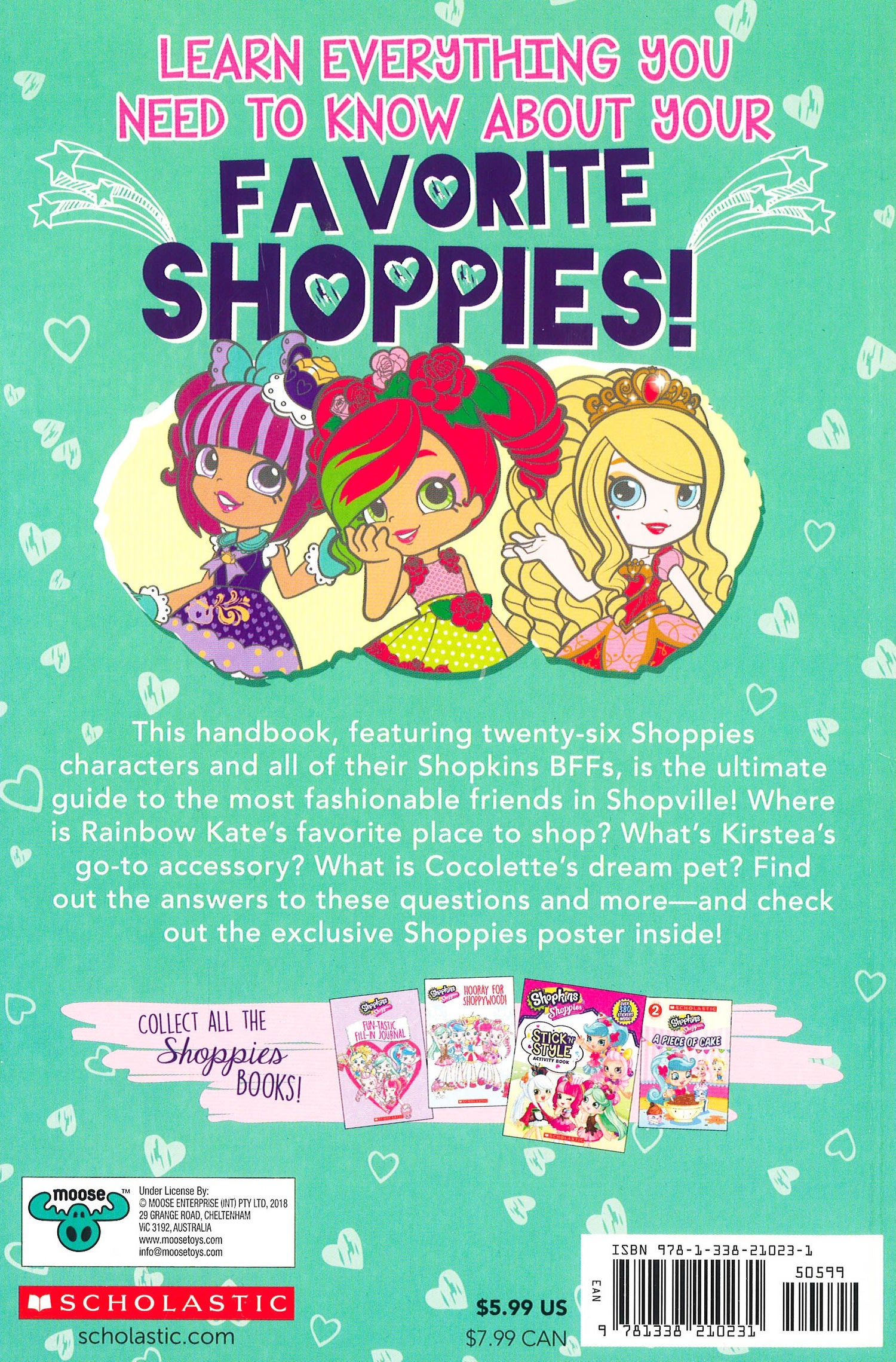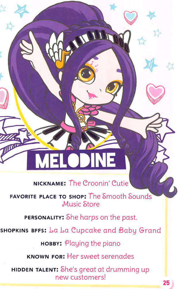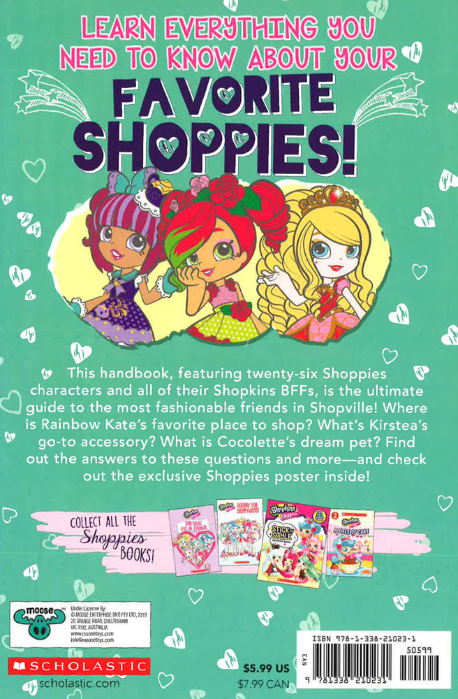 This handbook, featuring 26 Shoppies characters and all of their Shopkins BFFs, is the ultimate guide to the most fashionable friends in Shopville! Where is Rainbow Kates favourite place to shop? Whats Kirsteas go-to accessory? What is Cocolettes dream pet? Find out the answers to these questions and moreand check out the exclusive Shoppies poster inside!