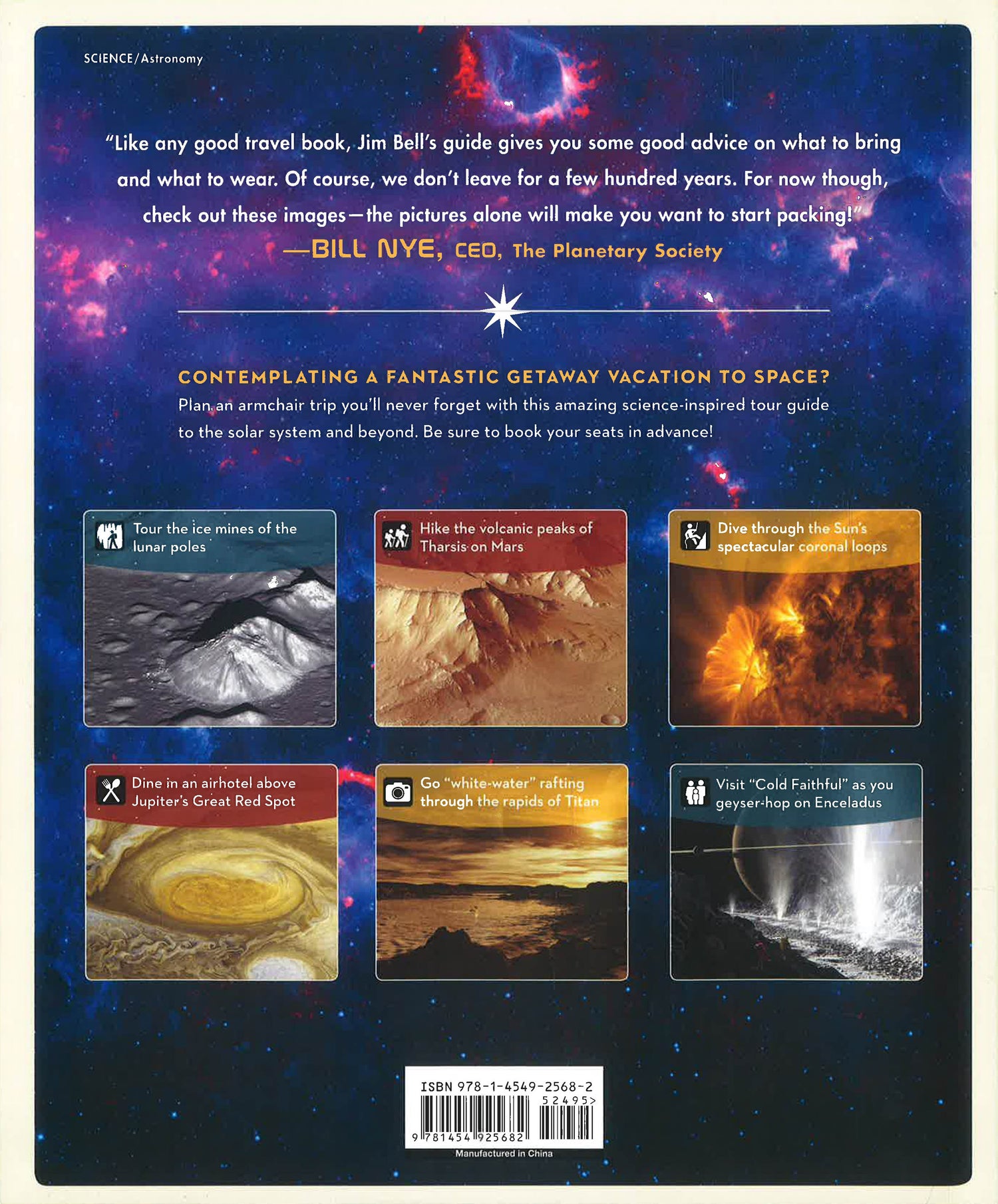 Ages 10 & Up Do you dream of journeying to other worlds? Featuring eight removable NASA posters, gorgeous full-colour photography, stunning art, and informative summaries based on 50 years of exploration, this large-format travel guide takes space enthusiasts on a futuristic tour of the solar system and beyond. Along the way, you'll experience what it's like to hike across lunar craters, soar through the winds of Venus, and raft down the rapids of Titan. Informative summaries of every destination are based on knowledge gleaned from more than 50 years of space exploration. The images provide a taste of the awe-inspiring destinations that we may one day reach, from the oceans of Europa to the newly discovered planets of TRAPPIST-1, while captions draw our attention to the unusual craters, ridges, seas, and storms captured by orbiting satellites, landers, and rovers. "Like any good travel book, Jim Bell's guide gives you some good advice on what to bring and what to wear. Of course, we don't leave for a few hundred years. For now though, check out these images - the pictures alone will make you want to start packing!" Bill Nye, CEO, The Planetary Society