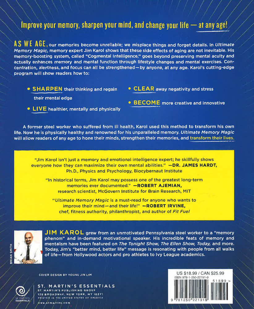 A former steel worker who suffered from ill health, Karol used this method to transform his own life. Now he is physically healthy and renowned for his unparalleled memory. His incredible feats of memory and mentalism have been featured on "The Tonight Show," "The Ellen Show," "Today," and more. Karol has used his Cogmental Intelligence method with clients from professional athletes to business leaders and speaks at venues around the world, from MIT to the Pentagon. With a foreword from bestselling author and physician Daniel G. Amen, Ultimate Memory Magic will allow readers of any age to hone their minds, strengthen their memories, and transform their lives.