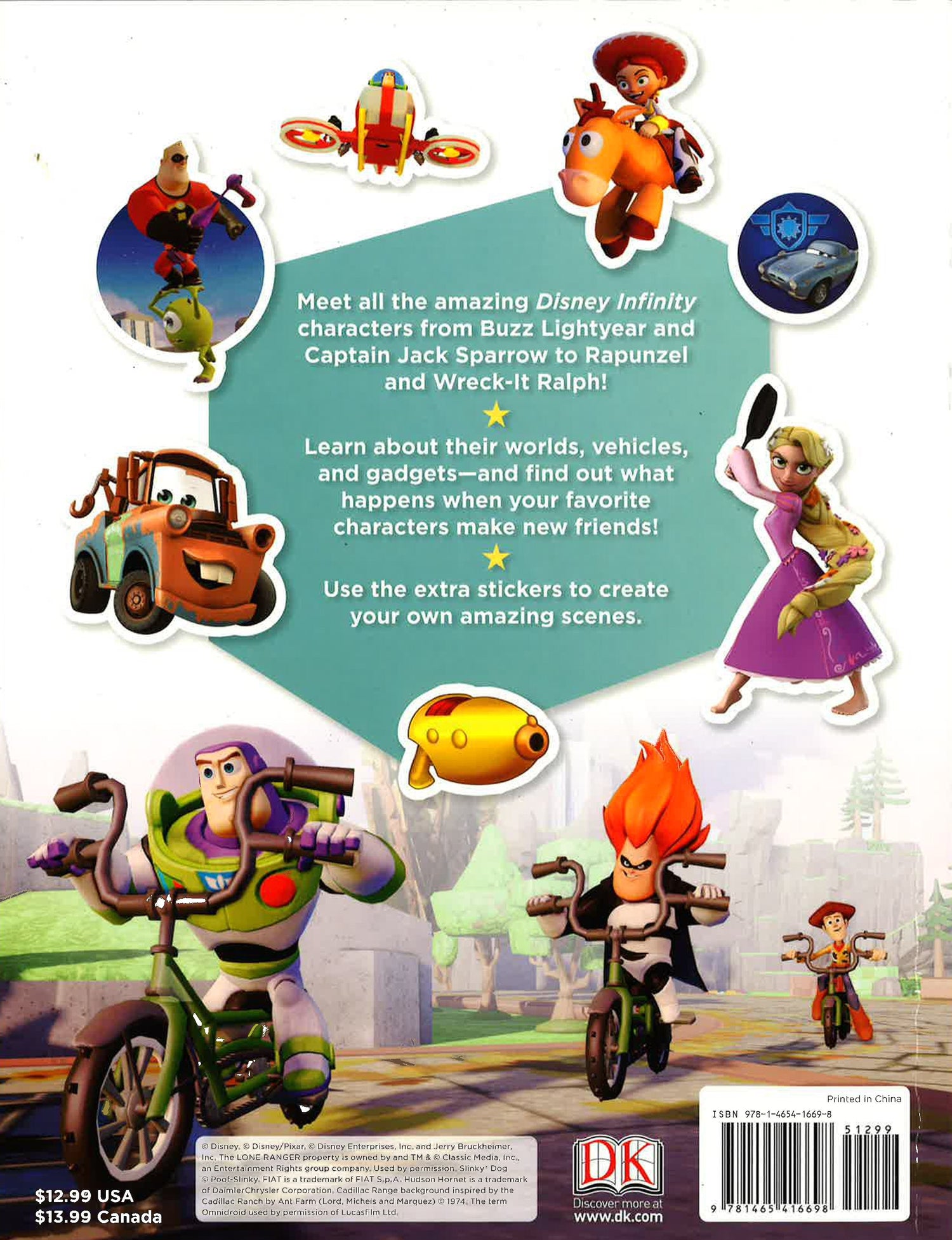 Children of all ages can continue the fun of Disney Infinity now with stickers in Ultimate Sticker Collection: Disney Infinity! With more than 1,000 full-color stickers of everyone's favorite Disney and Pixar characters, kids can re-create scenes from their video game experience or make completely new ones while learning even more about the characters and worlds they know and love.