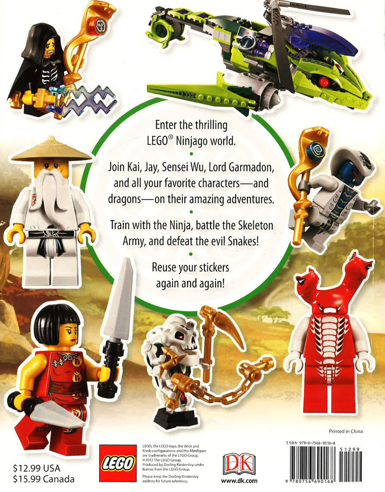 This action-packed sticker book has more than 1,000 full reusable stickers featuring your favorite minifigures, toys, and weapons from the exciting world of LEGO Ninjago all the way through 2012! With wise Sensei Wu, evil Lord Garmadon, and the brave Ninjago ninjas, LEGO Ninjago Ultimate Sticker Collection is sure to be a hit with aspiring little ninjas everywhere!