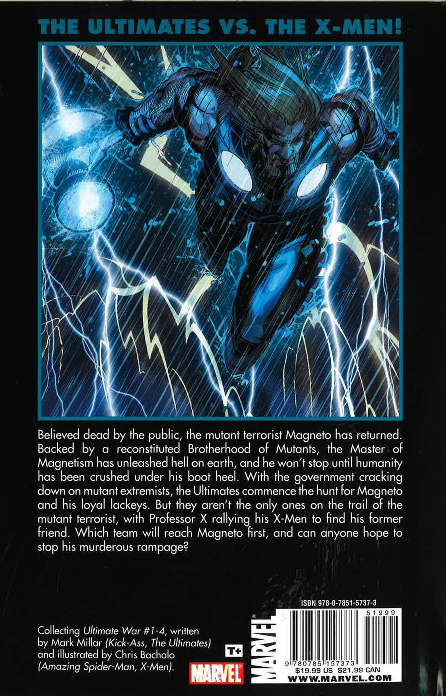 The Ultimates vs. the Ultimate X-Men: the battle begins! When the X-Men do the worst thing they could to humanity, the government orders Captain America, Iron Man, Thor and the rest of the Ultimates to bring them down. A small but lethal army, the Ultimates were created to face these and other newly rising threats to mankind. But the X-Men’s founder, Professor X, hasn’t been training his students for nothing and the young mutants just might take out the Ultimates first!