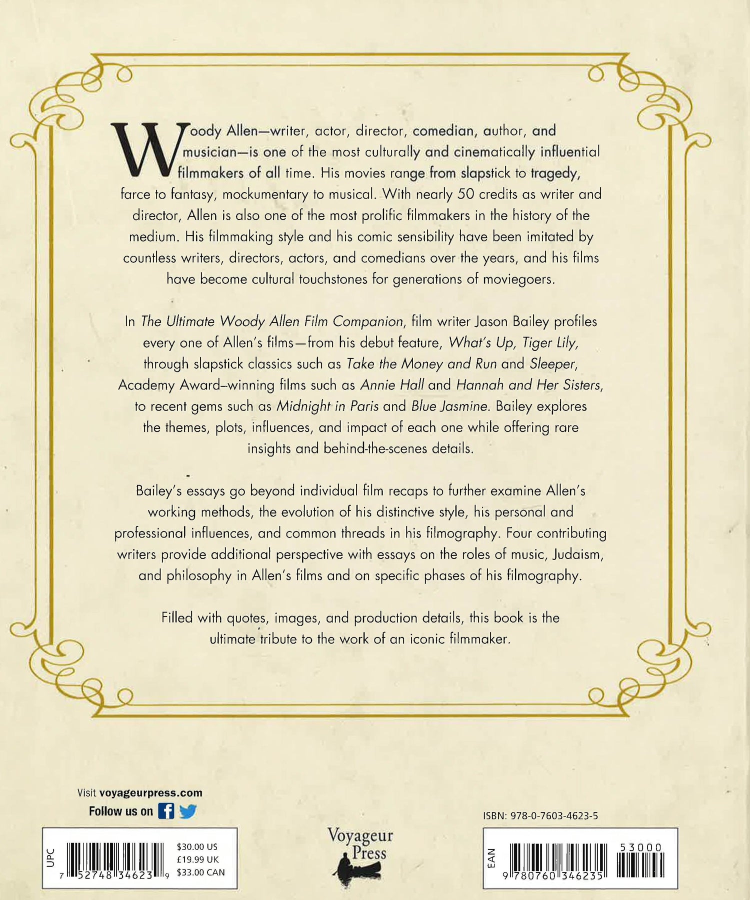 A complete look at the extensive, ageless, unparalleled filmography of Woody Allen. Writer, actor, director, comedian, author, and musician, Woody Allen is one of the most culturally and cinematically influential filmmakers of all time. His films - he has over 45 writing and directing credits to his name - range from slapstick to tragedy, farce to fantasy. As one of history's most prolific moviemakers, his style and comic sensibility have been imitated, but never replicated, by countless other filmmakers over the years. In The Ultimate Woody Allen Film Companion, film writer Jason Bailey profiles every one of Allen's films: from his debut feature, What's Up, Tiger Lily, through slapstick classics such as Take the Money and Run and Sleeper; Academy Award-winning films such as Annie Hall and Hannah and Her Sisters; and recent gems such as Midnight in Paris and Blue Jasmine. Bailey also includes essays on the fascinating themes that color Allen's works, from death and Freud to music and New York City. Getting up close and personal with the actors and actresses that have brought the iconic films to life, this book's behind-the-scenes stories span the entire career of a man whose catalog has grown into a timeless cornerstone of American pop culture. Complete with full cast lists, production details, and full-color images and artwork, The Ultimate Woody Allen Film Companion is the ultimate, indispensable reference to one of cinema's most beloved and important figures.
