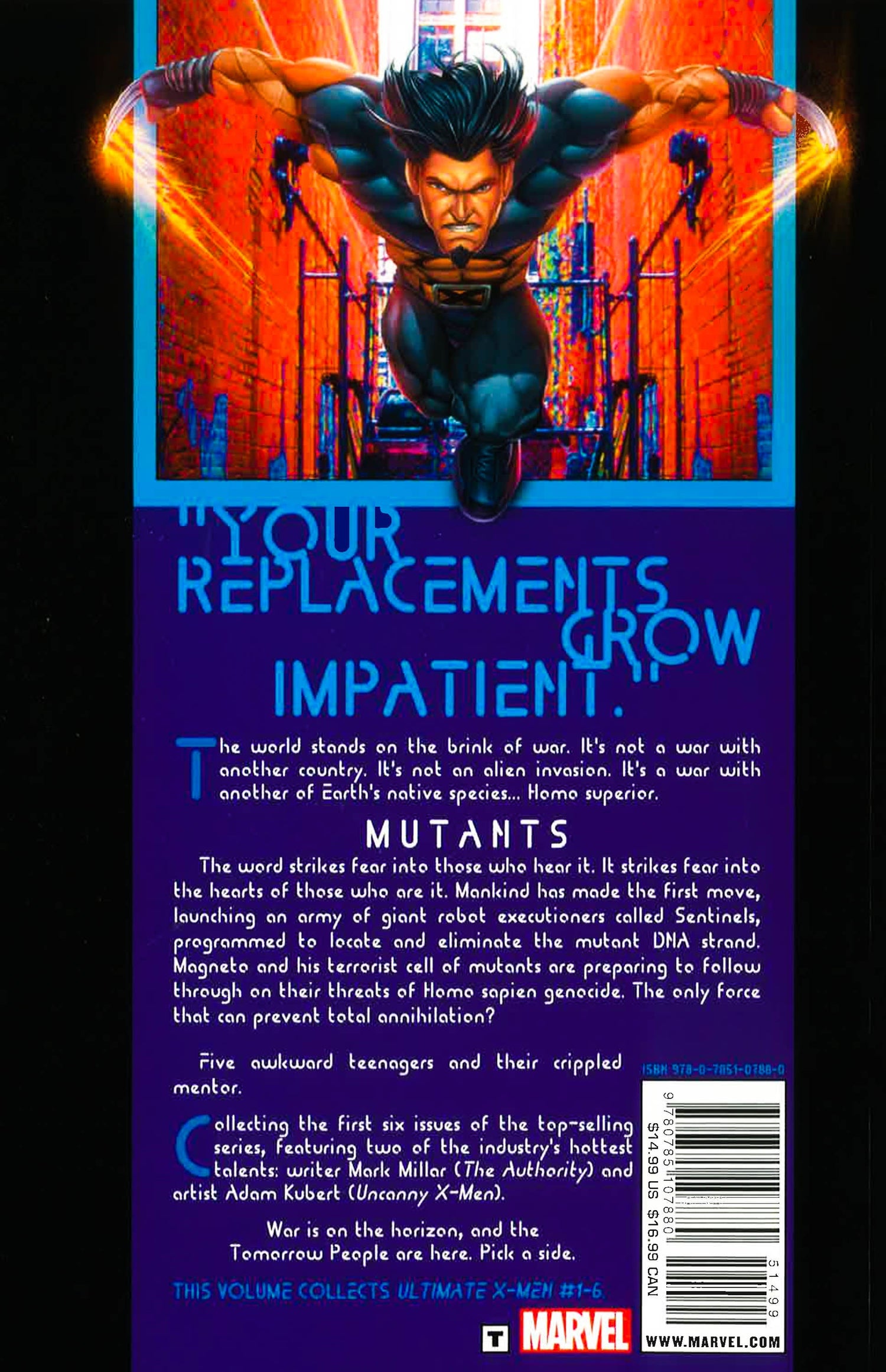Star writer Mark Millar delivers Marvel's mutant heroes in a streamlined, character-rich adventure perfect for fans of their smash hit movie. Brought to life by the talented Kubert brothers, the X-Men fight for the future in this break-neck thrill-ride.Mutants, those born with strange powers, through genetic mutation, are not only hated and feared, but brutally murdered in the streets by U.S. sanctioned killing machines. Driven by a dream of peace, Professor X gathers his mutant soldiers, his X-Men, to try and bring sanity to an insane world. But can he forge his band of misfits into a strike force capable of defending the Earth from the evil Magneto and his Brotherhood and even from the very humans they seek to protect.