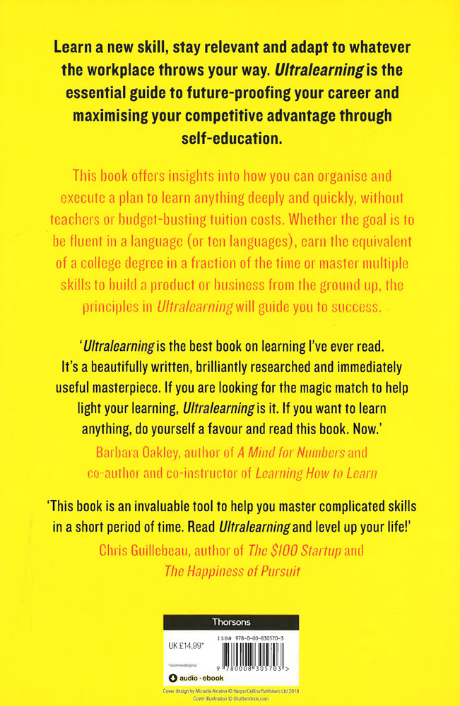Future-proof your career and maximize your competitive advantage by learning the skill necessary to stay relevant, reinvent yourself, and adapt to whatever the workplace throws your way in this essential guide.Future-proof your career and maximize your competitive advantage by learning the skill necessary to stay relevant, reinvent yourself, and adapt to whatever the workplace throws your way in this essential guide. Faced with tumultuous economic times and rapid technological change, staying ahead in your career depends on continual learning-a lifelong mastery of new ideas, subjects, and skills. If you want to accomplish more and stand apart from everyone else, you need to become an ultralearner. Scott Young incorporates the latest research about the most effective learning methods and the stories of other ultralearners like himself-among them Ben Franklin, Judit Polgar, and Richard Feynman, as well as a host of others, such as little-known modern polymaths like Nigel Richards who won the World Championship of French Scrabble-without knowing French. Young documents the methods he and others have used and shows that, far from being an obscure skill limited to aggressive autodidacts, ultralearning is a powerful tool anyone can use to improve their career, studies, and life. Ultralearningexplores this fascinating subculture, shares the nine principles behind every successful ultralearning project, and offers insights into how you can organize and execute a plan to learn anything deeply and quickly, without teachers or budget-busting tuition costs. Whether the goal is to be fluent in a language (or ten languages), earn the equivalent of a college degree in a fraction of the time, or master multiple skills to build a product or business from the ground up, the principles in Ultralearningwill guide you to success.
