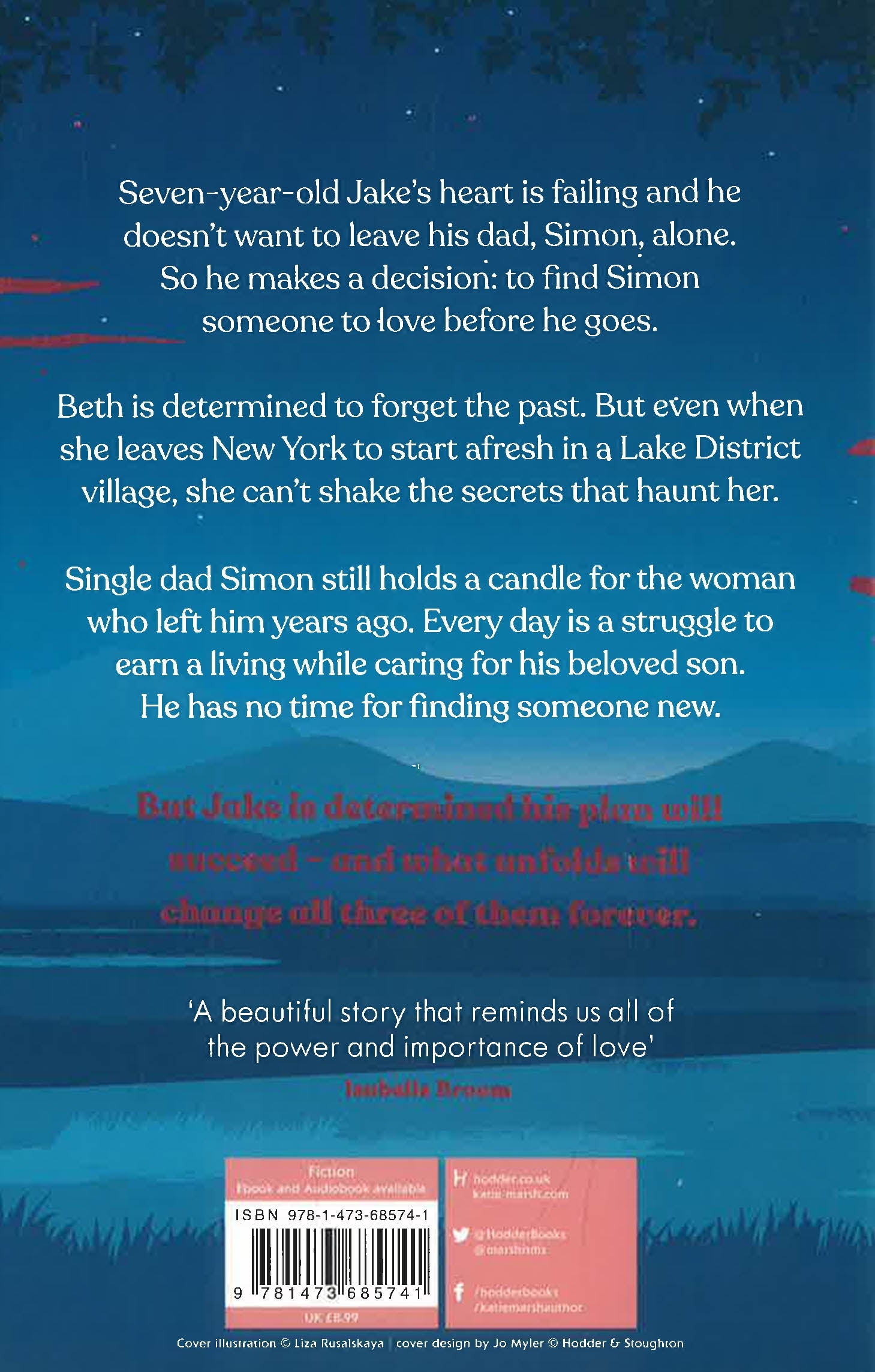 ONE BOY'S WISH. ONE EXTRAORDINARY LOVE STORY'A quietly beautiful and wonderfully human tale you will never forget' HeatSeven-year-old Jake's heart is failing and he doesn't want to leave his dad, Simon, alone. So he makes a decision: to find Simon someone to love before he goes.Beth is determined to forget the past. But even when she leaves New York to start afresh in a Lake District village, she can't shake the secrets that haunt her.Single dad Simon still holds a candle for the woman who left him years ago. Every day is a struggle to earn a living while caring for his beloved son. He has no time for finding someone new.But Jake is determined his plan will succeed - and what unfolds will change all three of them forever.'A touching love story' Kate Eberlen'A beautiful story that reminds us of the power and importance of love' Isabelle Broom'Gorgeously written and utterly life-affirming' Miranda Dickinson