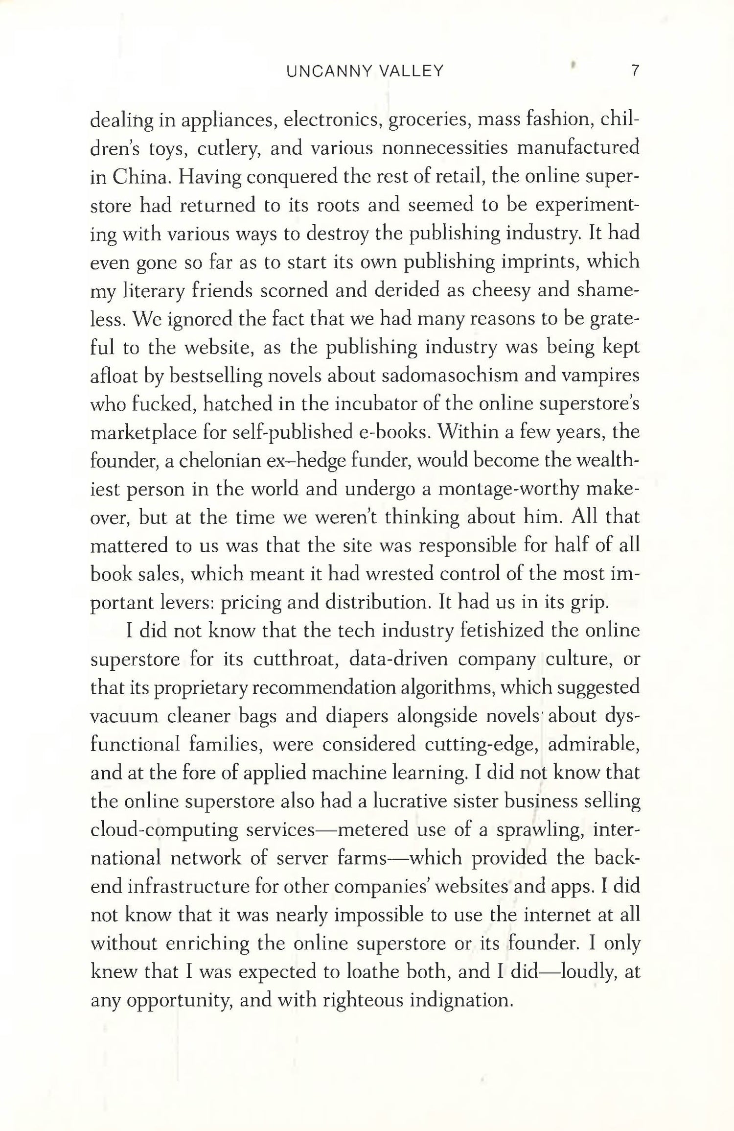 Unsparing and incisive, Uncanny Valley is a cautionary tale, and a revelatory interrogation of a world reckoning with consequences its unwitting designers are only beginning to understand.