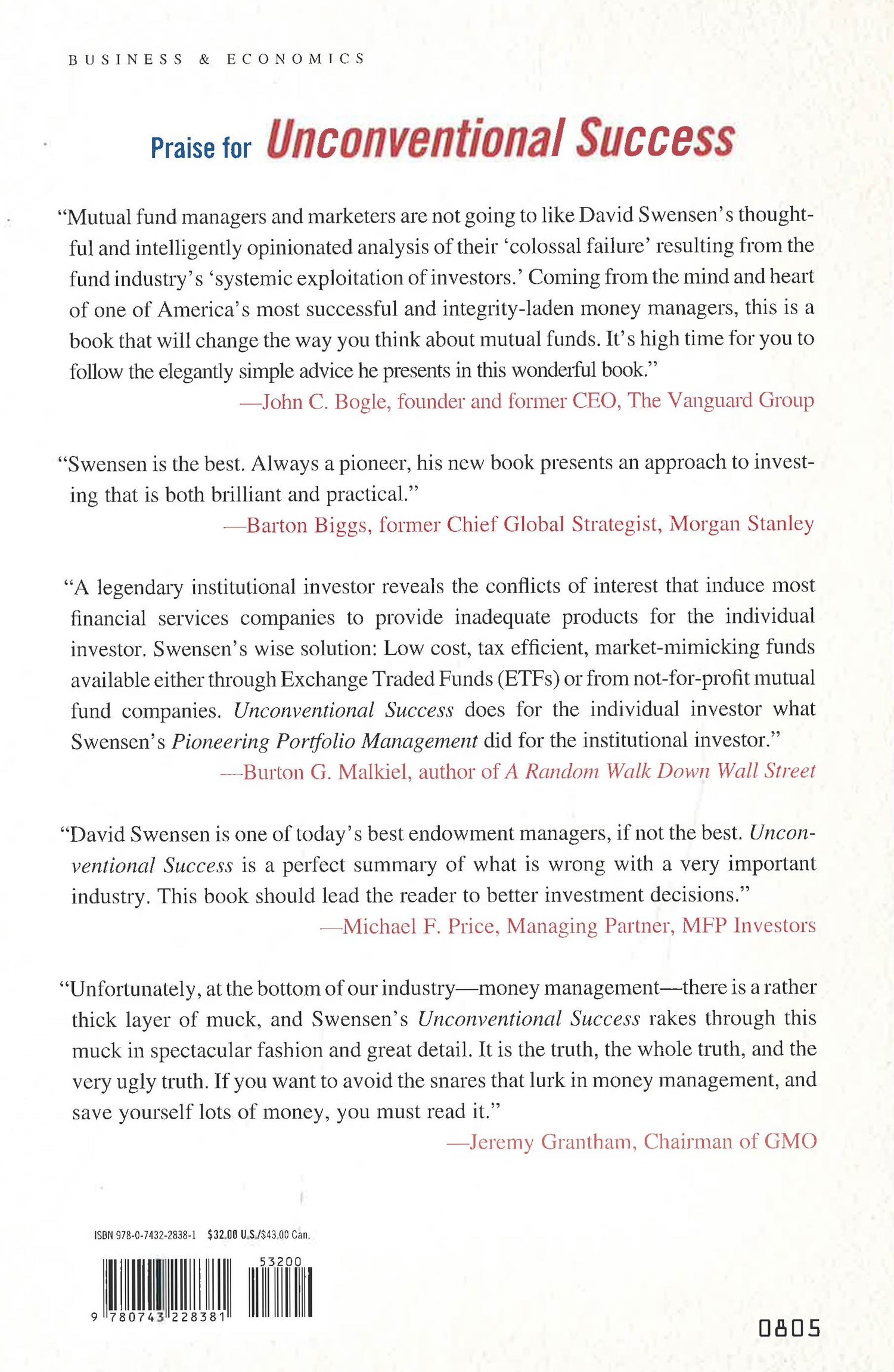 Unconventional Success provides the guidance and financial know-how for improving the personal investor's financial future.