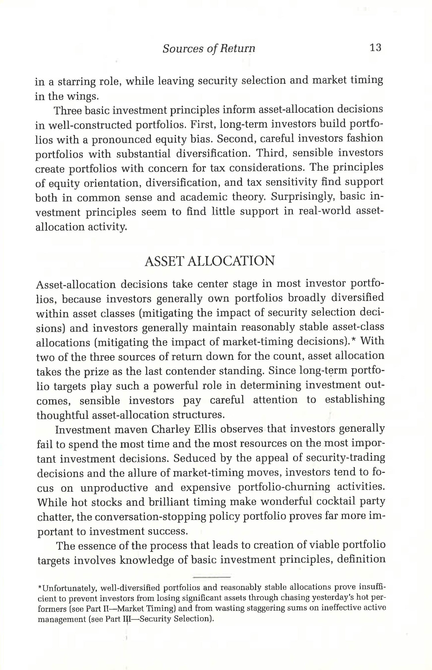 Swensen's solution? A contrarian investment alternative that promotes well-diversified, equity-oriented, "market-mimicking" portfolios that reward investors who exhibit the courage to stay the course. Swensen suggests implementing his nonconformist proposal with investor-friendly, not-for-profit investment companies such as Vanguard and TIAA-CREF. By avoiding actively managed funds and employing client-oriented mutual fund managers, investors create the preconditions for investment success.