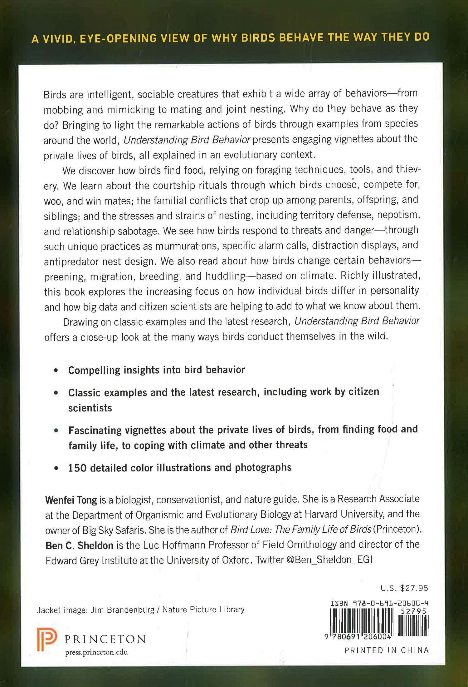 Birds are intelligent, sociable creatures that exhibit a wide array of behaviors--from mobbing and mimicking to mating and joint nesting. Why do they behave as they do? Bringing to light the remarkable actions of birds through examples from species around the world, Understanding Bird Behavior presents engaging vignettes about the private lives of birds, all explained in an evolutionary context.