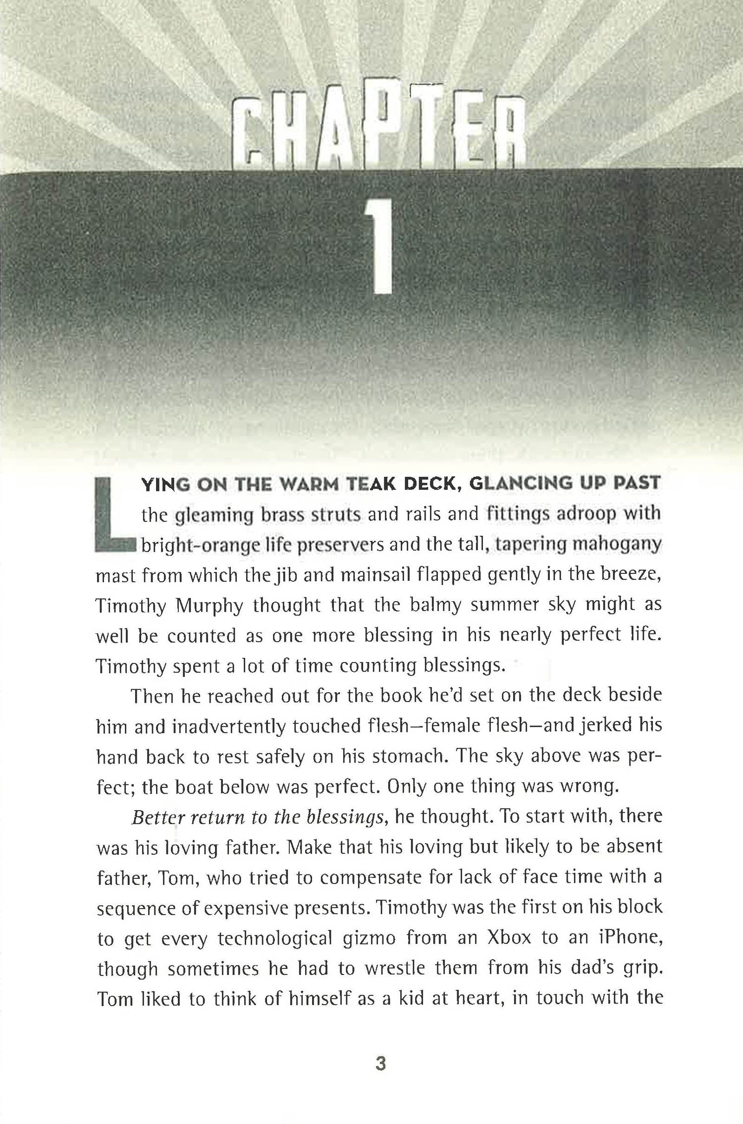 In this fast-paced adventure story, Timothy and Jessamyn are towed through the streets of Manhattan riding in Timothy's family's sailboat, on their way to the Long Island shore, when the boat comes unhitched from its truck. The teens "sail" backward down a hill in Upper Manhattan, then fall down a huge construction site hole and into the vast sewer system below.