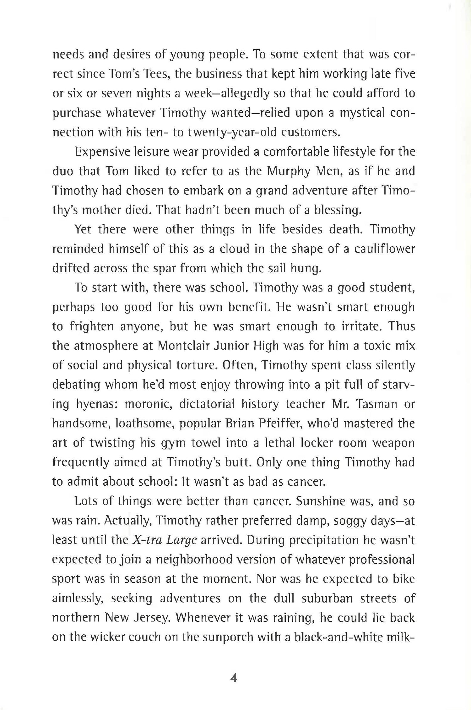 Thrust into an amazing adventure, the kids navigate waterfalls and rapids as they travel through the rain sewers. They meet a graffiti artist their own age, a homeless person named You, and rats the size of large dogs. They fall into the hands of a gangster who claims the sewers as her kingdom and the homeless as her subjects, and acts as a fence for luxury goods! Will she feed Timothy and Jessamyn to the rats?
