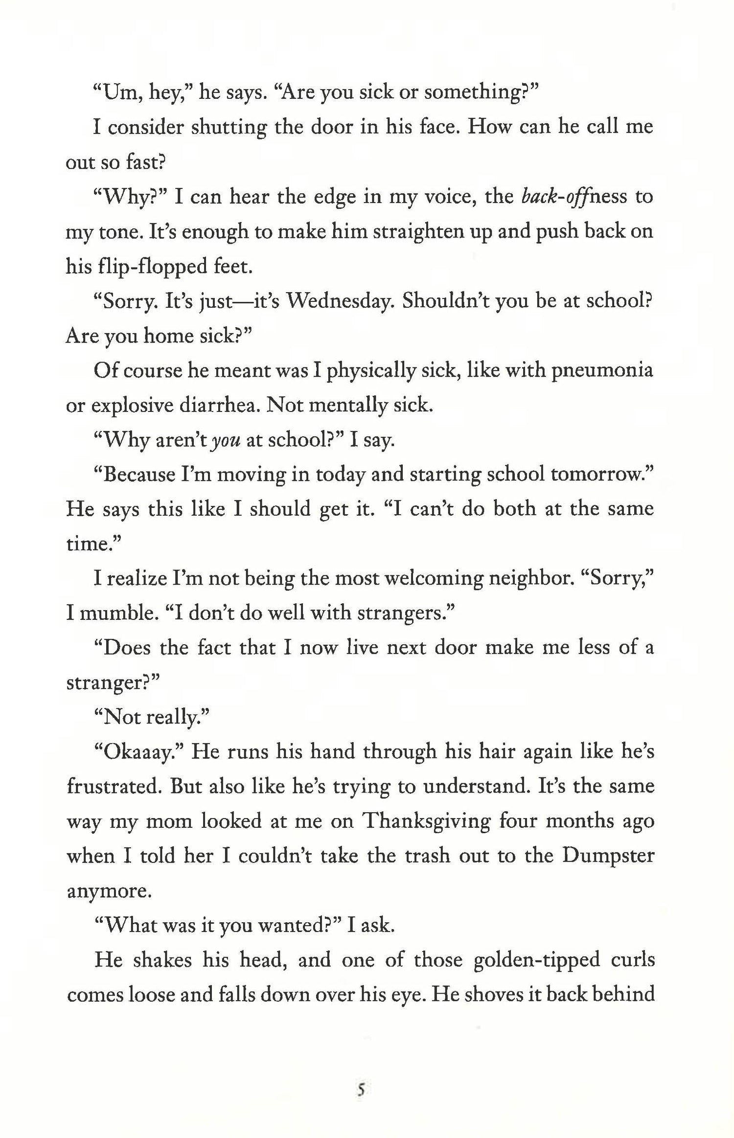 Morgan didn't mean to do anything wrong that day. Actually, she meant to do something right. But her kind act inadvertently played a role in a deadly tragedy. In order to move on, Morgan must learn to forgive--first someone who did something that might be unforgivable, and then, herself. But Morgan can't move on. She can't even move beyond the front door of the apartment she shares with her mother and little brother. Morgan feels like she's underwater, unable to surface. Unable to see her friends. Unable to go to school. When it seems Morgan can't hold her breath any longer, a new boy moves in next door. Evan reminds her of the salty ocean air and the rush she used to get from swimming. He might be just what she needs to help her reconnect with the world outside. Underwater is a powerful, hopeful debut novel about redemption, recovery, and finding the strength it takes to face your past and move on.