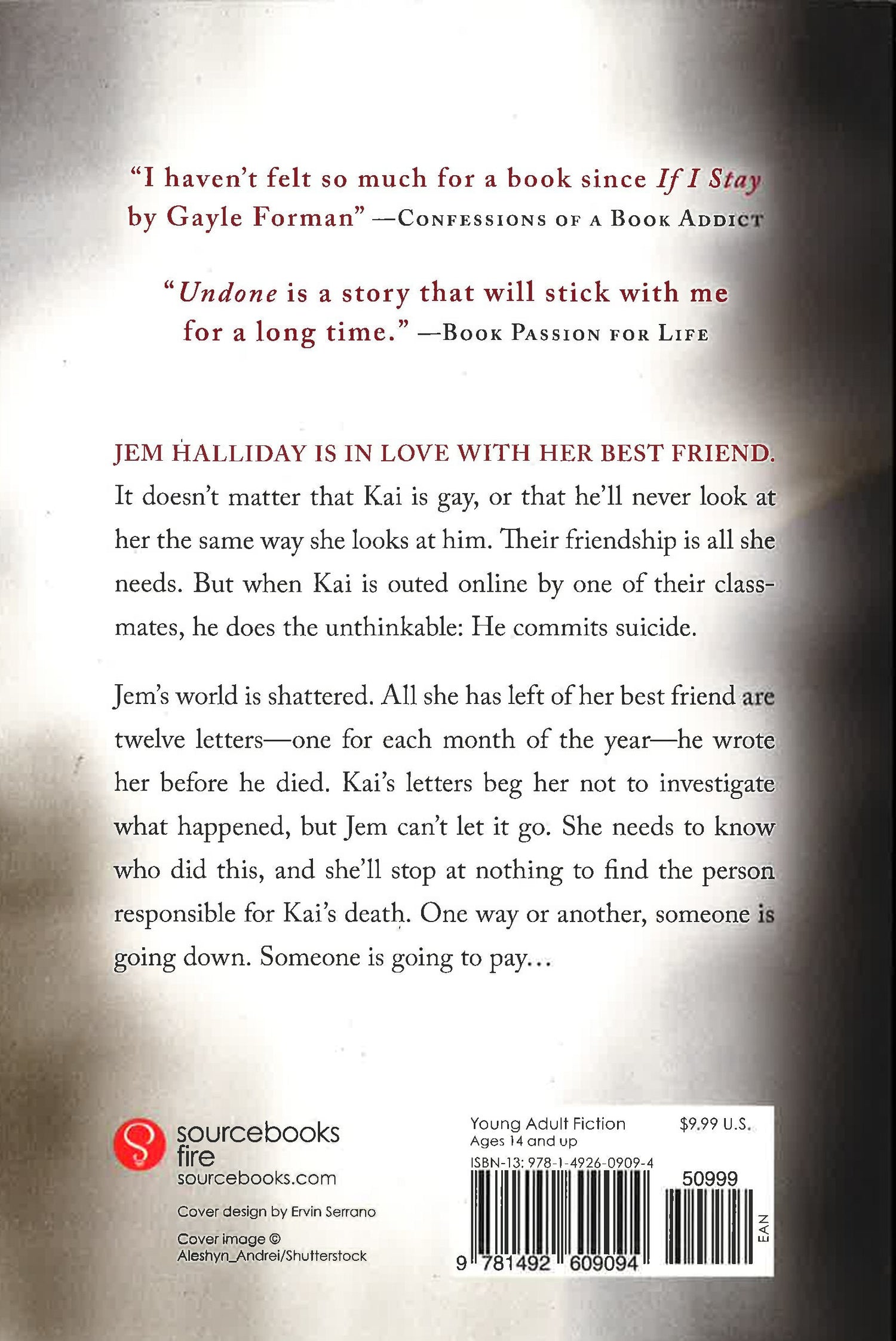 Jem's world is shattered. All she has left of her best friend are twelve letters--one for each month of the year--he wrote her before he died. Kai's letters beg her not to investigate what happened, but Jem can't let it go. She needs to know who did this, and she'll stop at nothing to find the person responsible for Kai's death. One way or another, someone is going down. Someone is going to pay...