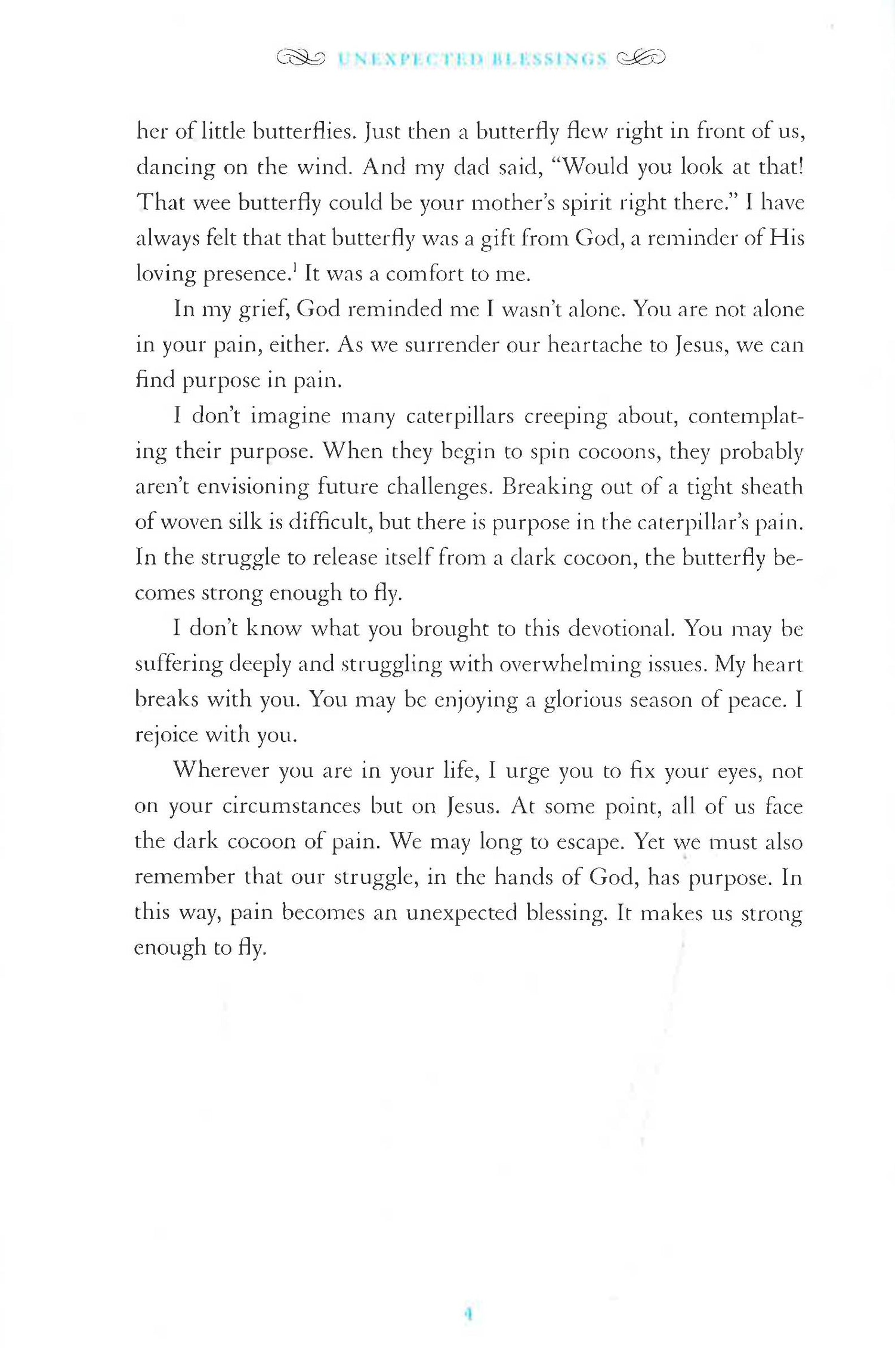 Featuring some of the most moving content from her previous book, along with new heartwarming material, Unexpected Blessings combines scripture with insight and prayer, helping you enjoy a moment of calm and encouragement as you reflect on God’s love for you. This is the perfect gift for anyone looking to be reminded that when we open our hearts, we discover blessings surrounding us in every circumstance of our lives.