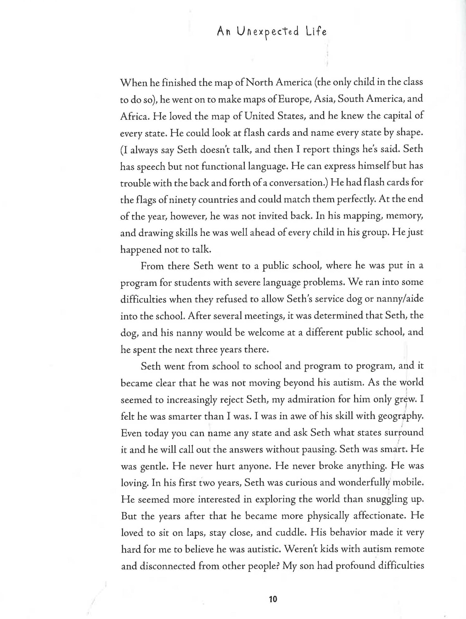 An Unexpected Life tells the story of how one mother's perseverance, love, and faith helped her autistic son blossom into an extraordinary artist. After Seth Chwast was diagnosed with autism at a young age, his mother, Debra, initially denied the harsh reality. But even after the truth sank in, she did not give up on her son, always believing - often in the face of expert opinion - that Seth had special gifts as well as special needs. When he turned twenty, an oil-painting class unlocked a talent no one could have suspected: her son, who rarely speaks, and cannot cross the street by himself, was an artistic genius, eager to speak to the world through his joyful paintings and sculptures.