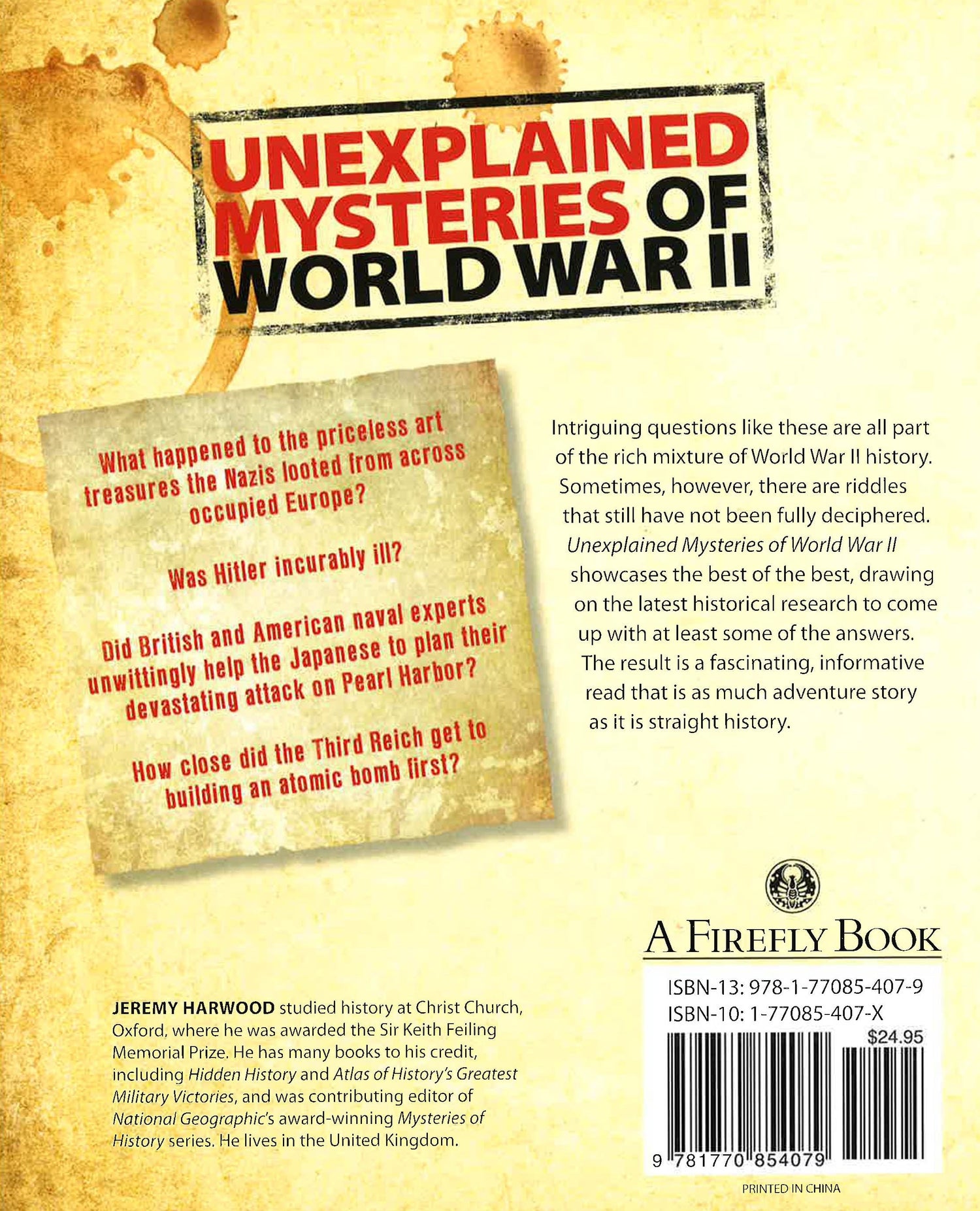 Unexplained Mysteries of World War II recounts 25 of the most fascinating mysteries from the war. The murderous plots, strange disappearances, criminal activities, scandals, deceptions, and peculiar decisions are the fodder of great fiction except that they are shockingly true.