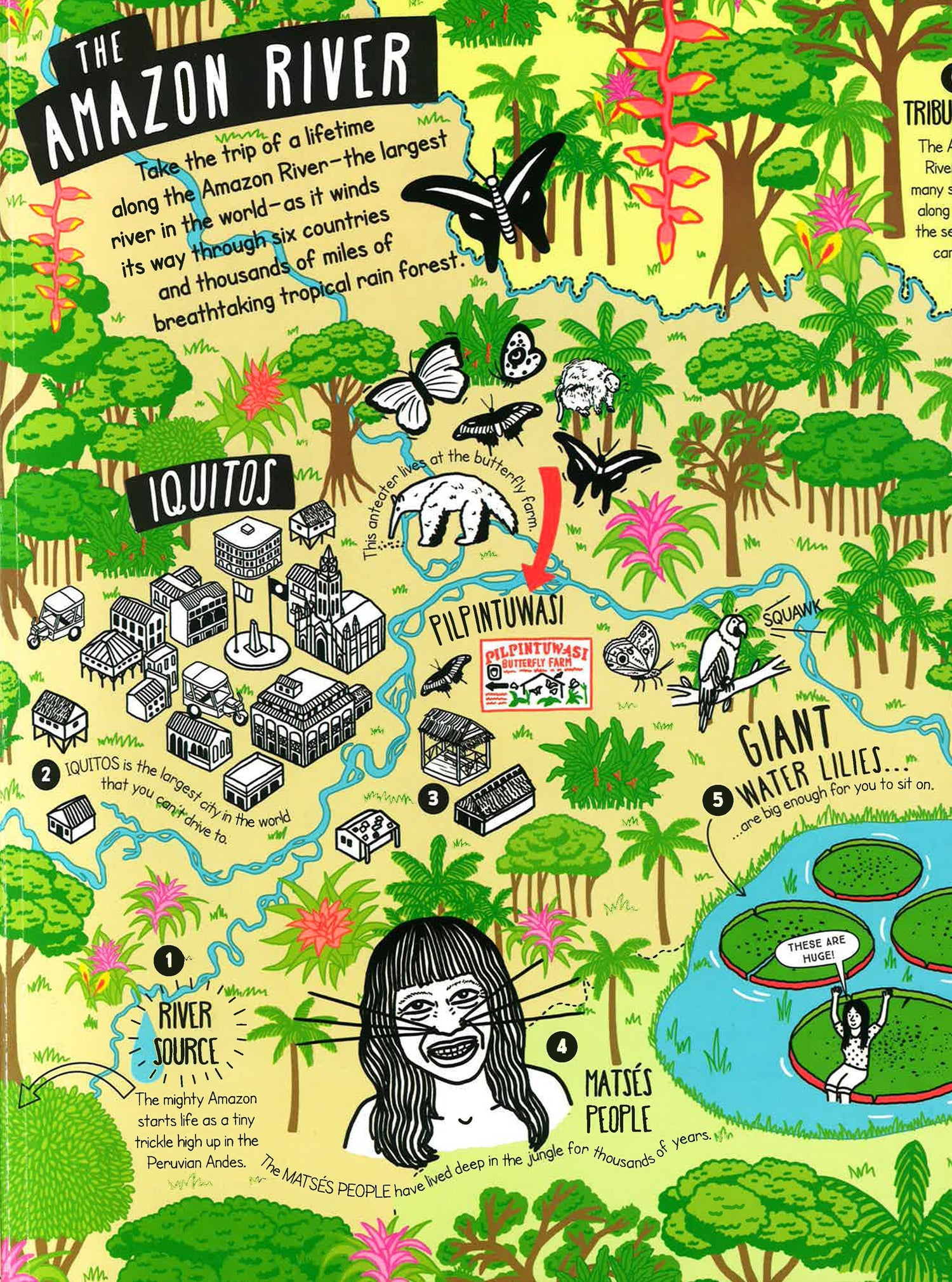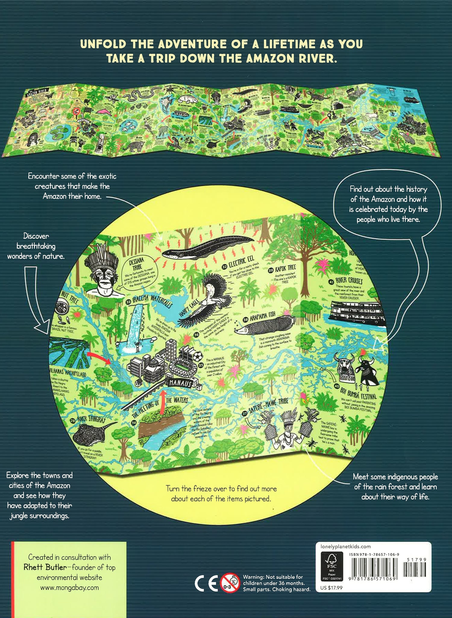 Chart an unforgettable journey in your trusty canoe down the Amazon river with this beautifully illustrated 16-panel concertina pull-out wall frieze. Learn just how unique and important this fascinating place is as you wind past colourful communities, busy jungle cities, and incredible rainforest creatures and wacky wildlife, from high up in the Andes of Peru, to the bustling city of Belem in Brazil. Then turn the frieze over to discover loads of fascinating facts about each point of interest encountered along the journey, from pink river dolphins to a disappearing tribal village.
