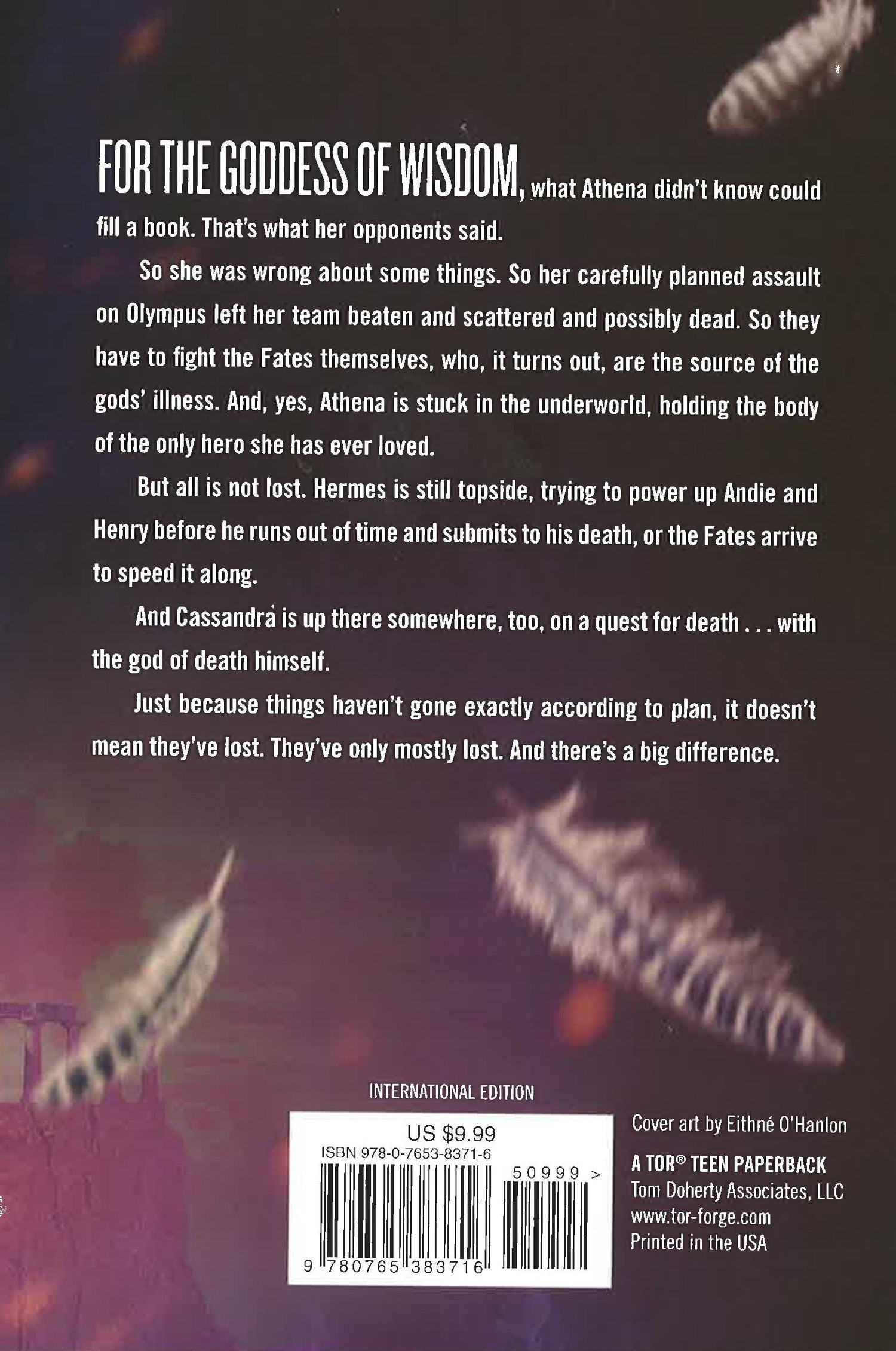 For the Goddess of Wisdom, what Athena didn't know could fill a book. That's what her opponents said. So she was wrong about some things. So her carefully planned assault on Olympus left her team beaten and scattered and possibly dead. so they have to fight the Fates themselves, who, it turns out, are the source of the gods' illness. And, yes, Athena is stuck in the underworld, holding the body of the only hero she has ever loved. But all is not lost. Hermes is still topside, trying to power up Andie and Henry before he runs out of time and submits to his death, or the Fates arrive to speed it along. And Cassandra is up there somewhere, too, on a quest for death . . . with the god of death himself. Just because things haven' gone exactly according to plan, it doesn't mean they've lost. .They've only mostly lost. And there's a big difference.