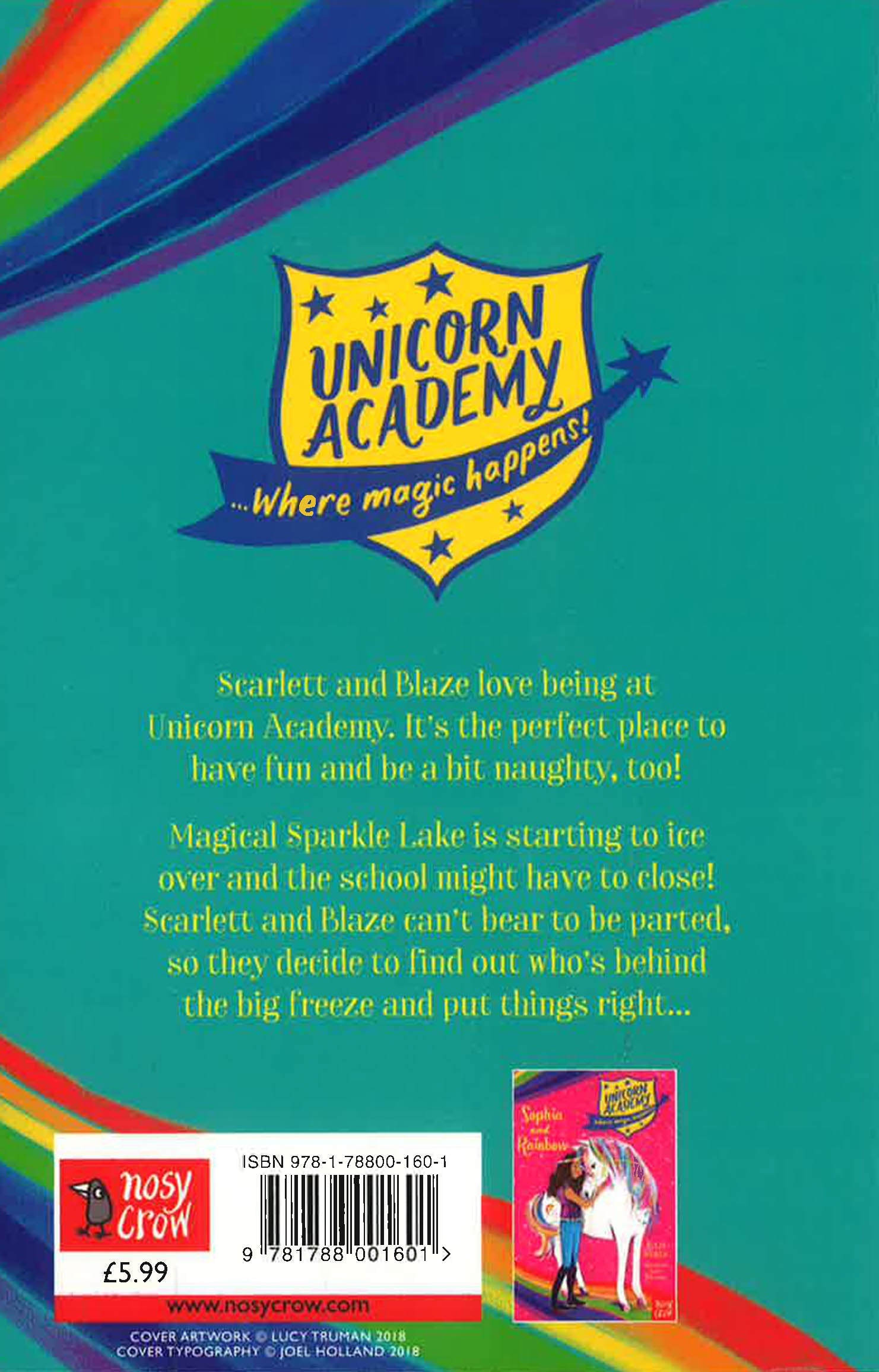 When your best friend is a unicorn, magical adventures are guaranteed! Imagine a school where you meet your own unicorn and have amazing adventures together! That's what happens for the girls at Unicorn Academy on beautiful Unicorn Island.Scarlett and Blaze love being at Unicorn Academy. It's the perfect place to have fun and be a bit naughty, too! But magical Sparkle Lake is starting to ice over and the school might have to close! Scarlett and Blaze can't bear to be parted, so they decide to find out who's behind the big freeze and put things right...With a glittery cover and beautifully illustrated throughout by Lucy Truman, Unicorn Academy is the perfect series for 7+ readers who love magic and adventure.Check out the other titles in this series: Sophia and Rainbow, Ava and Star, Isabel and Cloud and many more!
