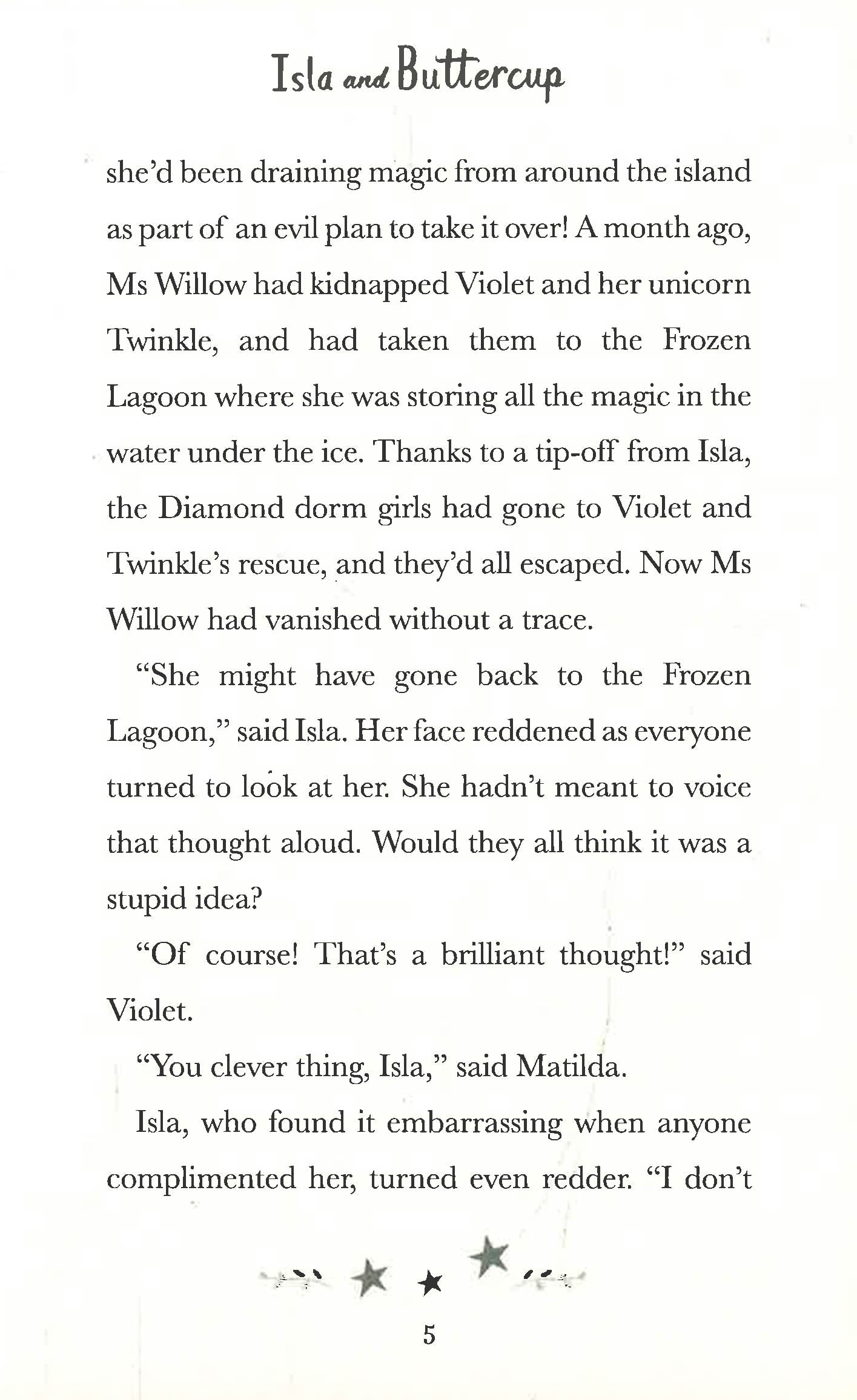 When your best friend is a unicorn, magical adventures are guaranteed! Imagine a school where you meet your own unicorn and have amazing adventures together! That's what happens for the girls at Unicorn Academy on beautiful Unicorn Island. Isla, her beautiful unicorn, Buttercup, and their friends are determined to find the person responsible for draining the island's magic and stop them. But Valentina is behaving very oddly, and it's not just because the head of the academy is her aunt. Does she know something about Ms Willow that the others don't? With a glittery cover and beautifully illustrated throughout by Lucy Truman, Unicorn Academy is the perfect series for 7+ readers who love magic and adventure. Check out the other titles in this series: Sophia and Rainbow, Scarlett and Blaze, Isabel and Cloud and many more!