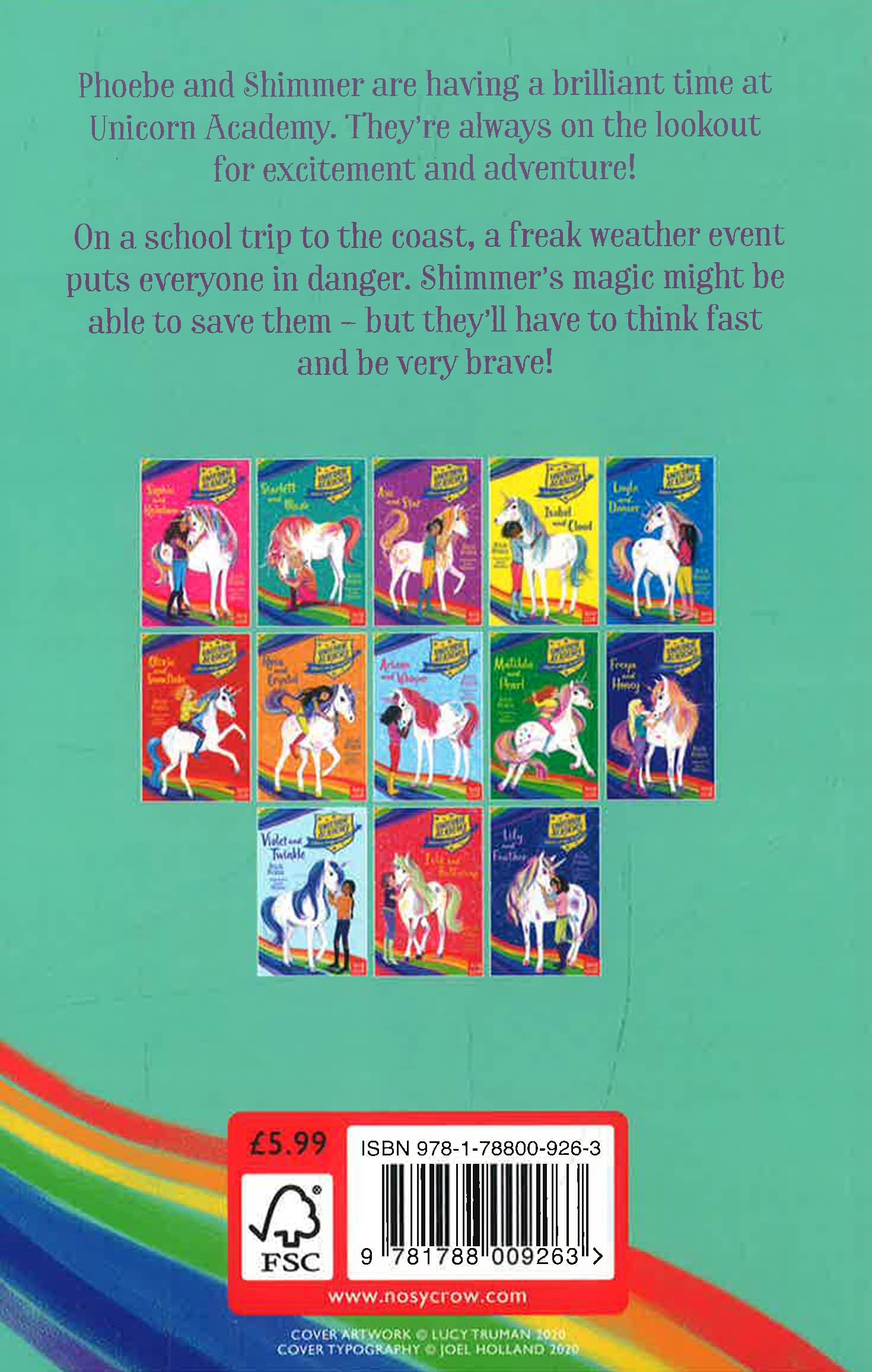 When your best friend is a unicorn, magical adventures are guaranteed! Imagine a school where you meet your own unicorn and have amazing adventures together! That's what happens for the girls at Unicorn Academy on beautiful Unicorn Island.Phoebe and Shimmer are having a brilliant time at Unicorn Academy. They're always on the lookout for excitement and adventure! On a school trip to the coast, a freak weather event puts everyone in danger. Shimmer's magic might be able to save them - but they'll have to think fast and be very brave! With a glittery cover and beautifully illustrated throughout by Lucy Truman, Unicorn Academy is the perfect series for 7+ readers who love magic and adventure. Have you read the other Unicorn Academy stories? Sophia and RainbowScarlett and BlazeAva and StarIsabel and CloudLayla and DancerOlivia and SnowflakeRosa and CrystalAriana and WhisperMatilda and PearlFreya and HoneyViolet and TwinkleIsla and ButtercupLily and Feather