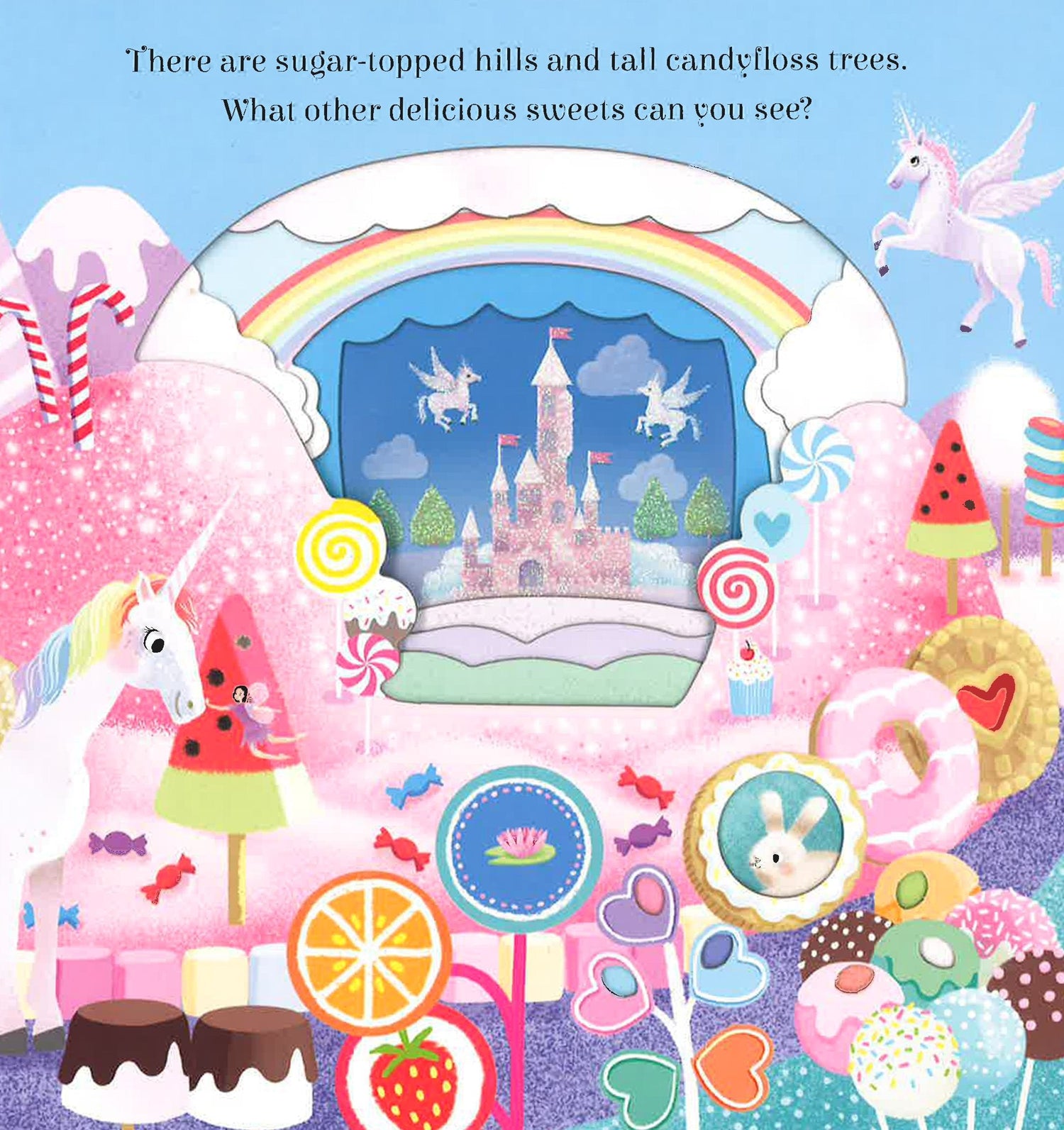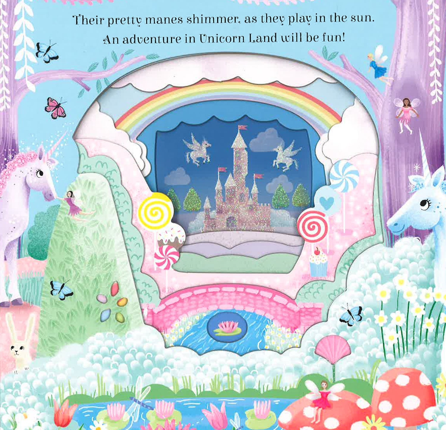Step inside the magical world of unicorns with this enchanting, interactive board book. With cut-through pages to reveal each beautiful scene, from the fairy wood to the unicorn palace and much more, little ones will love to explore Unicorn Land.