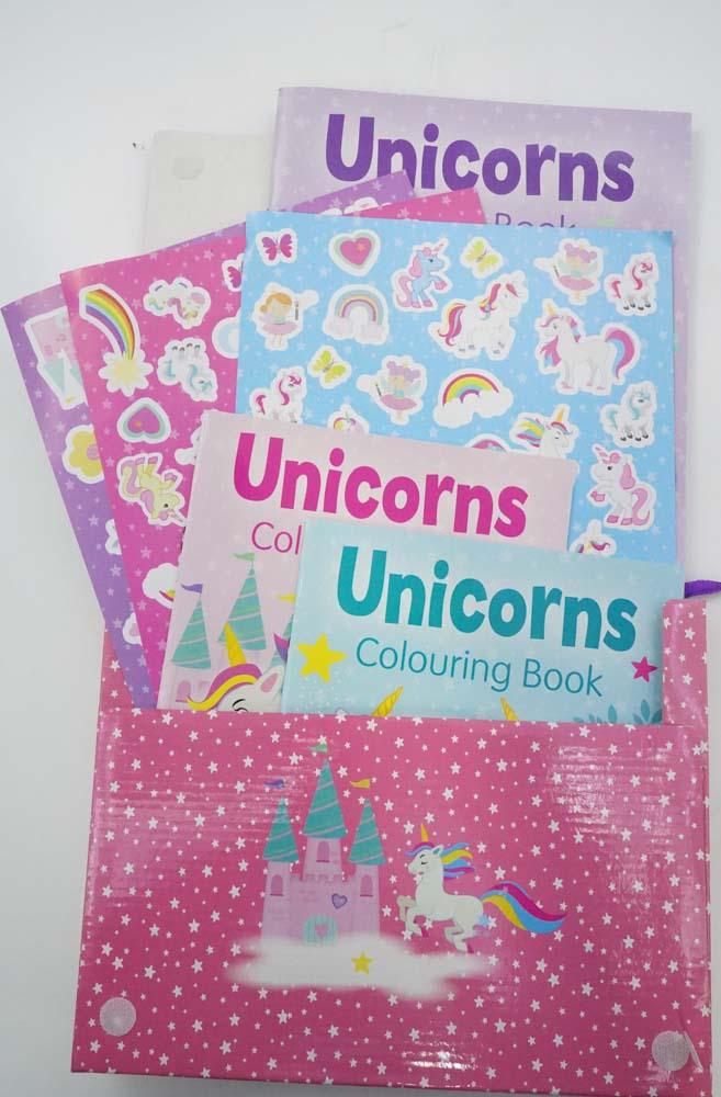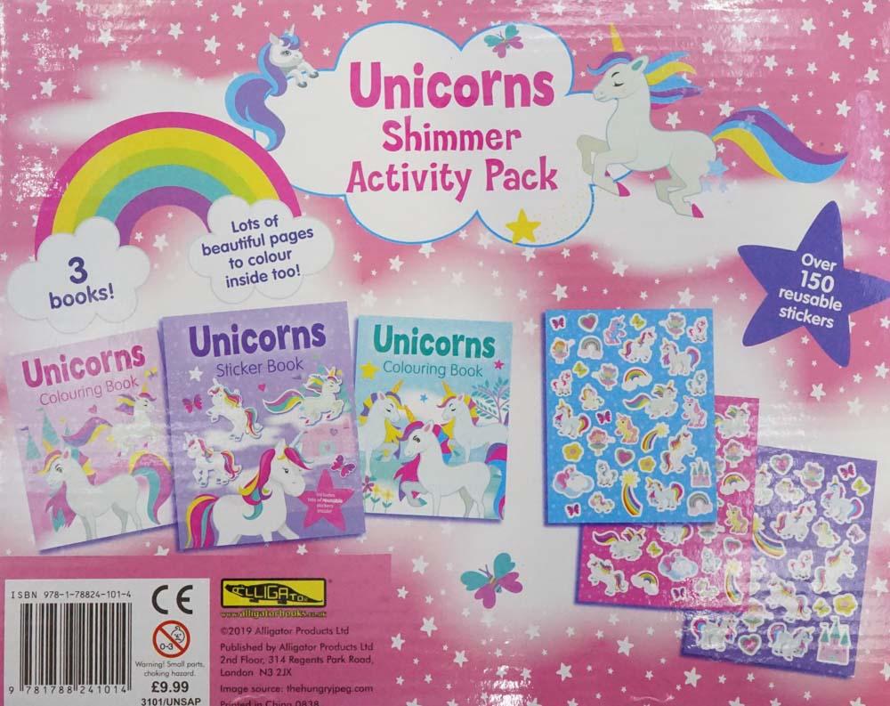 Explore the mystical world of unicorns with this Unicorns Shimmer Activity Pack. This wonderful activity pack contains two colouring books, sticker book and includes over 150 reusable stickers so you can decorate your unicorn art to give it that extra sparkle!
