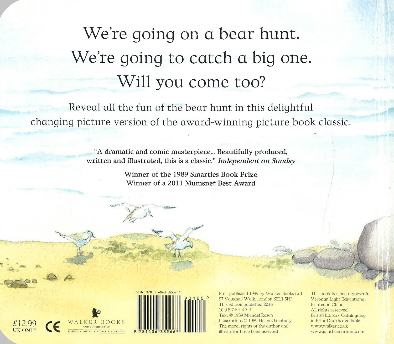 We're going on a bear hunt. We're going to catch a big one. Will you come too? For over twenty-five years, readers have been swishy swashing and splash sploshing through this award-winning favourite. Follow and join in the family's excitement as they wade through the grass, splash through the river and squelch through the mud in search of a bear. What a surprise awaits them in the cave on the other side of the dark forest! Now you can join in the fun with this interactive changing picture book.