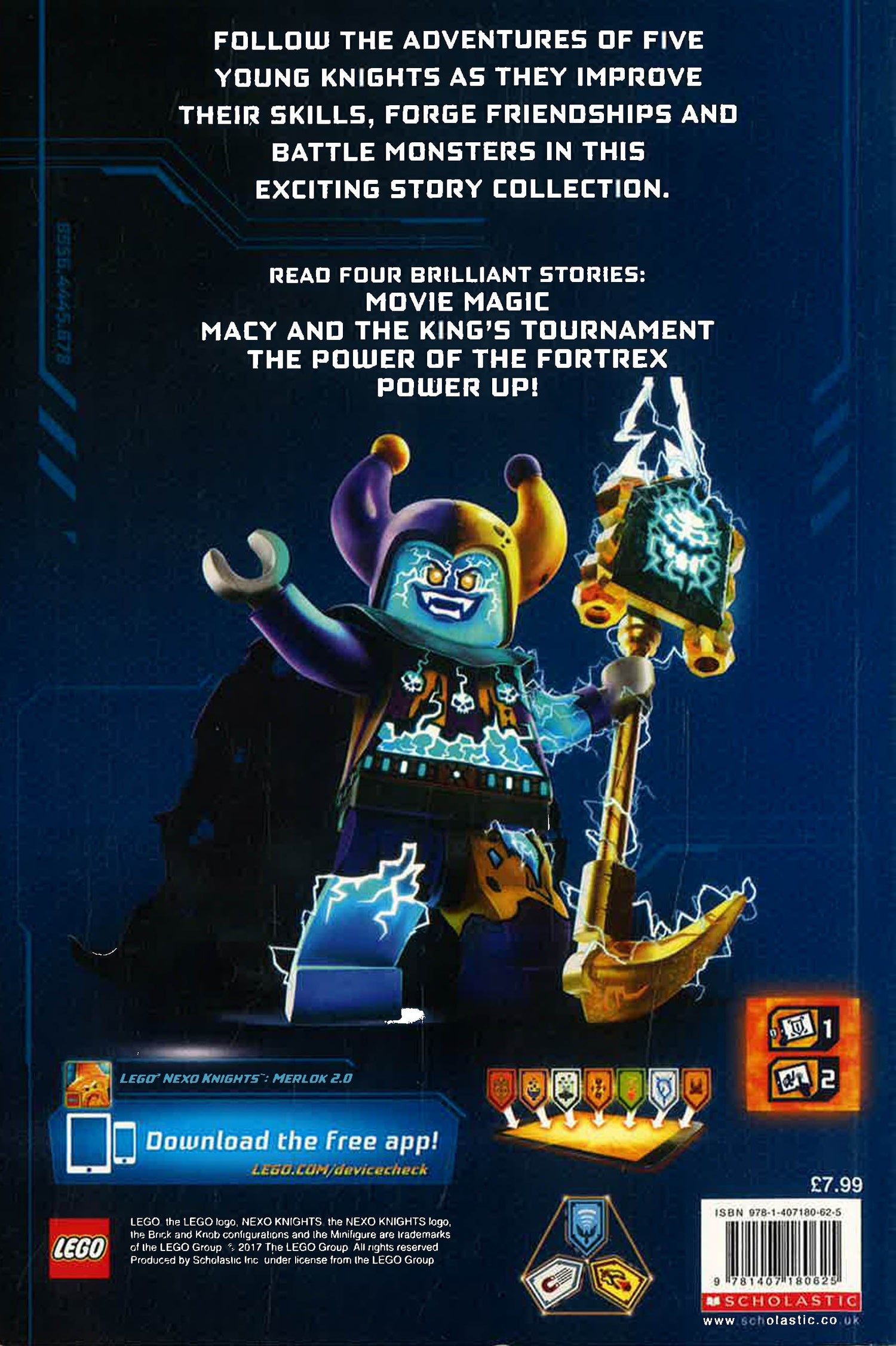 An action-packed story collection based on the series: LEGONEXOKNIGHTS! The books featured in this collection are Power of the Fortrex, Movie Magic, Macy and the King’s Tournament and Power Up! Set in the futuristic, high-tech Kingdom of Knighton, follow the adventures of five young knights as they improve their skills, forge friendships and battle monsters in these four exciting stories.