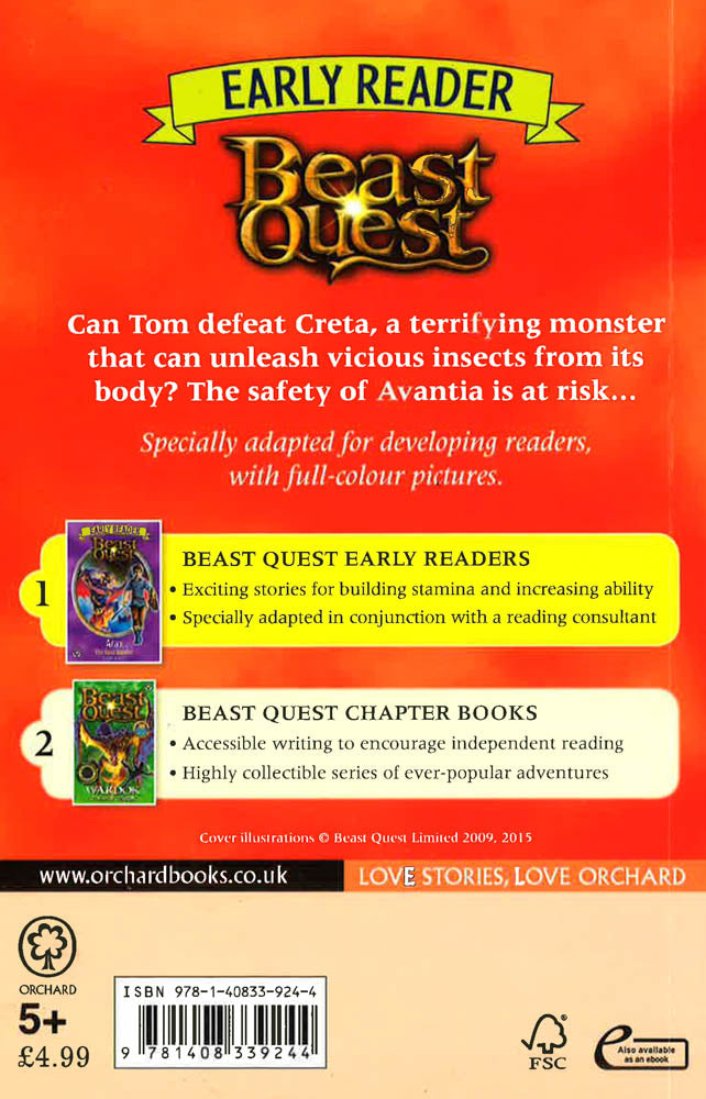 Evil Wizard Malvel has conjured up Creta, a terrifying monster that can unleash thousands of vicious insects from its body! Can Tom defeat Creta before the Beast destroys the whole kingdom?Beast Quest Early Readers are perfect for children learning to read and for families to enjoy together, with text vetted by a literacy expert and bright new colour illustrations.Also available: Beast Quest Early Reader 3: Arax the Soul Stealer!