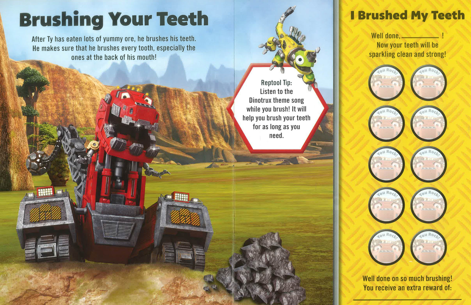 Encourage little ones to be their best with this Truckin' reward chart sticker book! Welcome to the AWESOME world of Dinotrux where half-dinosaur, half-construction vehicles RULE! This handy book includes reward charts for sleeping, brushing teeth, sharing, reading and eating dinner, as well as over 100 Rockin' reward stickers to encourage little ones to be their best!