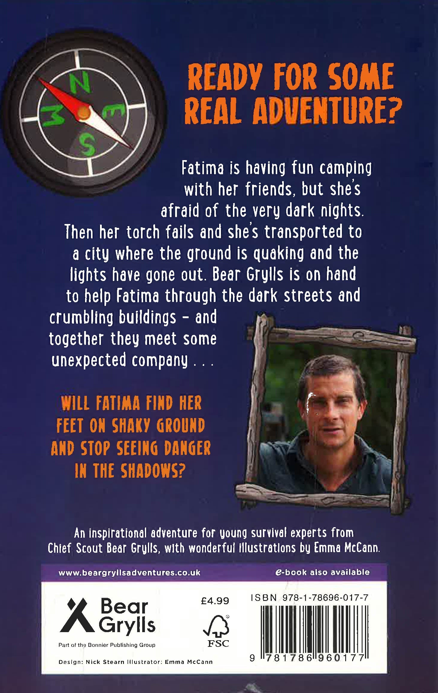 Fatima is scared of the dark. So when she's transported to a ruined city with no power, she'll need all the help she can get from adventurer Bear Grylls to overcome her fears . . . Fatima's loving Camp during the daytime, but pitch-black nights in the tent are scary. Then she's given a mysterious compass that transports her to a deserted city, where the aftershocks of a huge earthquake are still being felt and all the lights are out - and the buildings are falling down around her. But soon Fatima meets up with survival expert Bear Grylls, who helps her get safely out of the danger zone. Together they discover that the city's not quite as deserted as it seemed . . . and Fatima learns a few things about staying calm no matter what happens. Each book in this fun new 12-book series from Chief Scout BEAR GRYLLS follows a different child on an outdoor activity camp. Once they are given the magical compass, they meet the inspirational adventurer in an amazing place and learn new skills and facts they can take with them back to their real life.