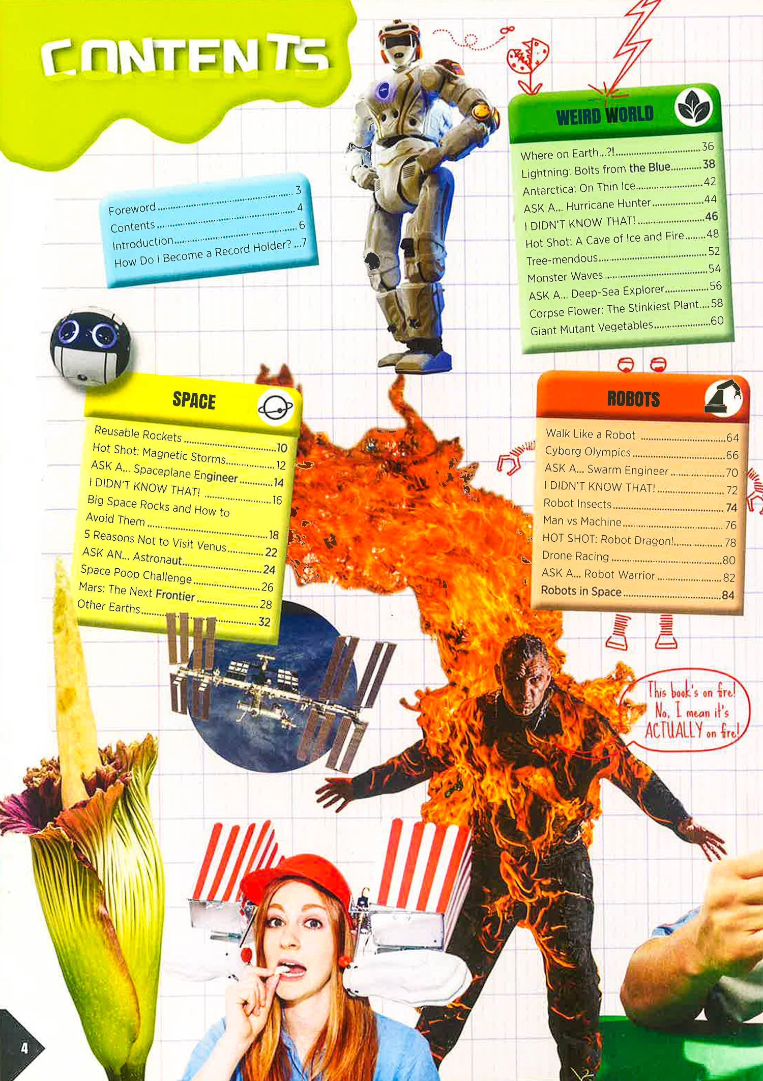 Guinness World Records: Science & Stuff is a whirlwind tour through the astounding, record-breaking world (and universe) around us. Packed with spectacular superlatives, shocking stats, fantastic facts and fun figures, Science and Stuff celebrates the simple joy in finding things out. What can cats teach us about the laws of physics? Why was cabbage banned on the International Space Station? (Can you fart in space?) And would a penny dropped from the Empire State Building really kill someone? (Short answer: No!) But it's not all facts and stats. The feature chapter just for Makers, introduced by our very own mad professor Burnaby Q. Orbax, challenges you to attempt record-breaking science experiments at home, from the fastest Mentos & Soda rocket car to the most slime thrown and caught in a minute! Join us as we rise from the deepest depths of the ocean, where weird glowing fish hunt in the darkness, to the mountaintop observatories where scientists unravel the secrets of the universe.