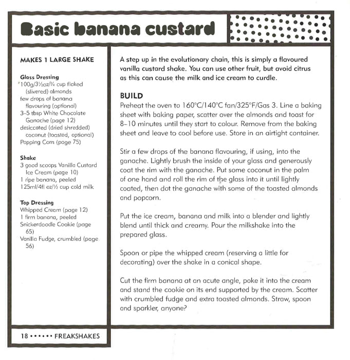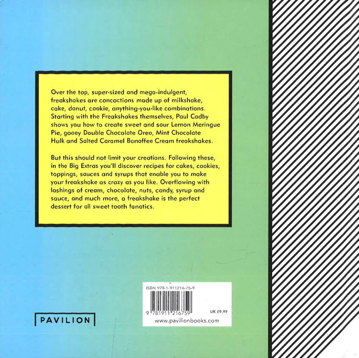The ultimate dessert for milkshakes-lovers, cake-lovers and dessert-lovers. Over the top, mega and indulgent are the best words to describe this new dessert taking the UK by storm. A freakshake, originally from Canberra, Australia, is a concoction of milkshake, cake, donut, biscuit, anything-you-like sweet-tastic combination. Start by creating the base for your freakshakes. We'll show you how to make an indulgent, creamy milkshake base that can then be topped with anything of your choosing to create your unique freakshake. Broken into chapters on basics, toppings, sauces and syrups this enables you to make your Freakshake as crazy as you like. Delve into recipes for Chocolate Brownies, Jammie Dodgers, Marshmallow and begin dressings your vessel. We've included Freakshake ideas such as a sweet and sour Lemon Meringue Pie, gooey Double Chocolate Oreo, Coffee Mocha Cracker and a Salted Caramel Banoffee Cream but this should not limit your creations. Overflowing with lashings of cream, chocolate, brownies, cakes, biscuits and sauce a freakshake is the perfect dessert for sweet tooth fanatics.