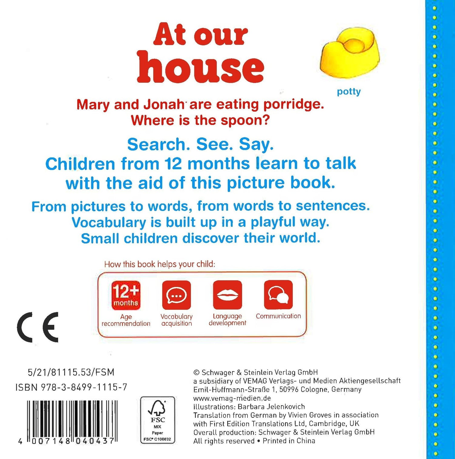 Search. See. Say. Children from 12 months learn to talk with the aid of this picture book.