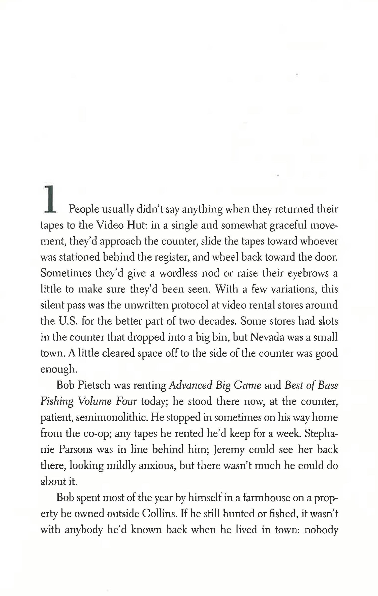 New York Times Bestseller Life in a small town takes a dark turn when mysterious footage begins appearing on VHS cassettes at the local Video Hut Jeremy works at the counter of Video Hut in Nevada, Iowa. It?s a small town?the first ?a? in the name is pronounced ay?smack in the center of the state. This is the late 1990s, pre-DVD, and the Hollywood Video in Ames poses an existential threat to Video Hut. But there are regular customers, a predictable rush in the late afternoon. It?s good enough for Jeremy: It?s a job; it?s quiet and regular; he gets to watch movies; he likes the owner, Sarah Jane; it gets him out of the house, where he and his dad try to avoid missing Mom, who died six years ago in a car wreck. But when Stephanie Parsons, a local schoolteacher, comes in to return her copy of Targets, starring Boris Karloff?an old movie, one Jeremy himself had ordered for the store?she has an odd complaint: ?There?s something on it,? she says, but doesn?t elaborate. Two days later, Lindsey Redinius brings back She?s All That, a new release, and complains that there?s something wrong with it: ?There?s another movie on this tape.?*This book may have remainder mark*