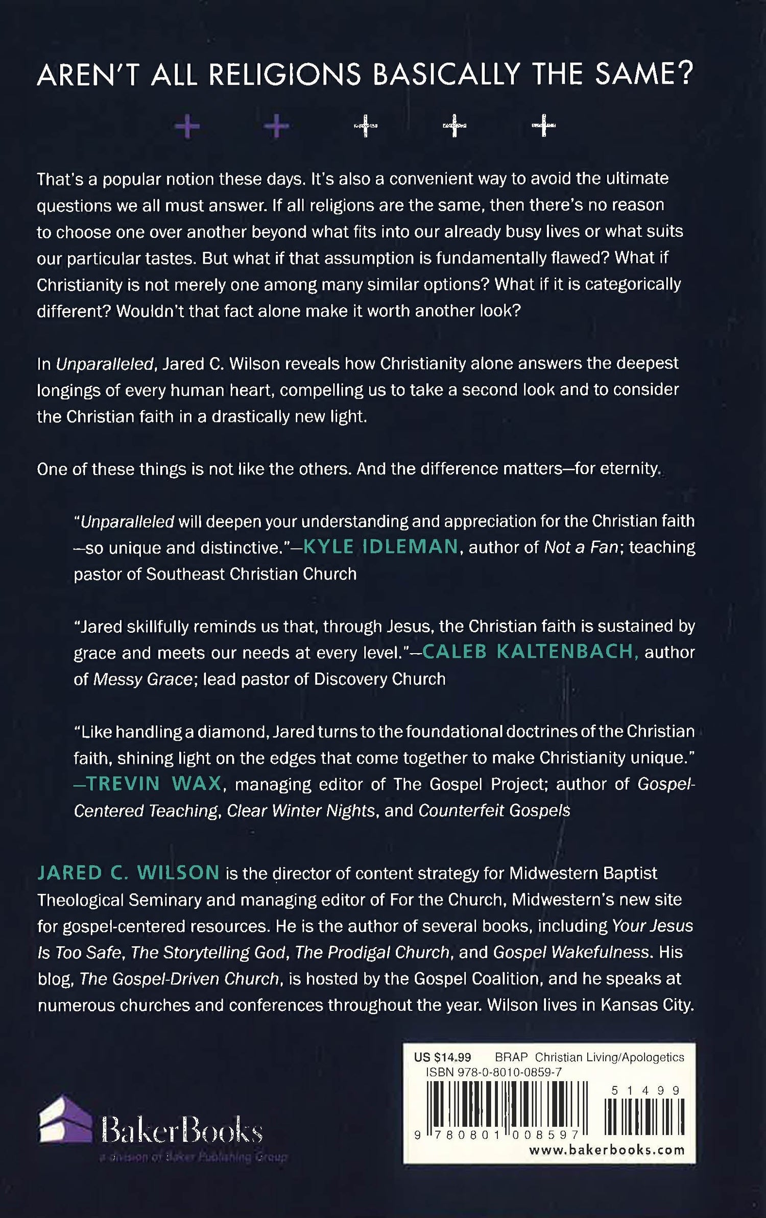 How Christianity's Unmatched Truth Answers the Deepest Longings of Every Human Heart To the popular objection Aren't all religions basically the same? pastor and author Jared Wilson answers with an enthusiastic No! Christianity is not merely one among many similar options. It is categorically different--and it's these differences that make it so compelling. In Unparalleled, Wilson holds up the teachings of the Bible to the clear light of day, revealing how Christianity rises above every other religion and philosophy of the world, and how its unmatched truth answers the deepest longings of every human heart. He provides an overview of Christianity's key claims showing how, from top to bottom, it is distinct from all other competing ideologies, religious and secular. Christians will come away with a fresh sense of the truth of their faith and nonbelievers will be compelled to consider the relevant claims of Christianity in a drastically new light.