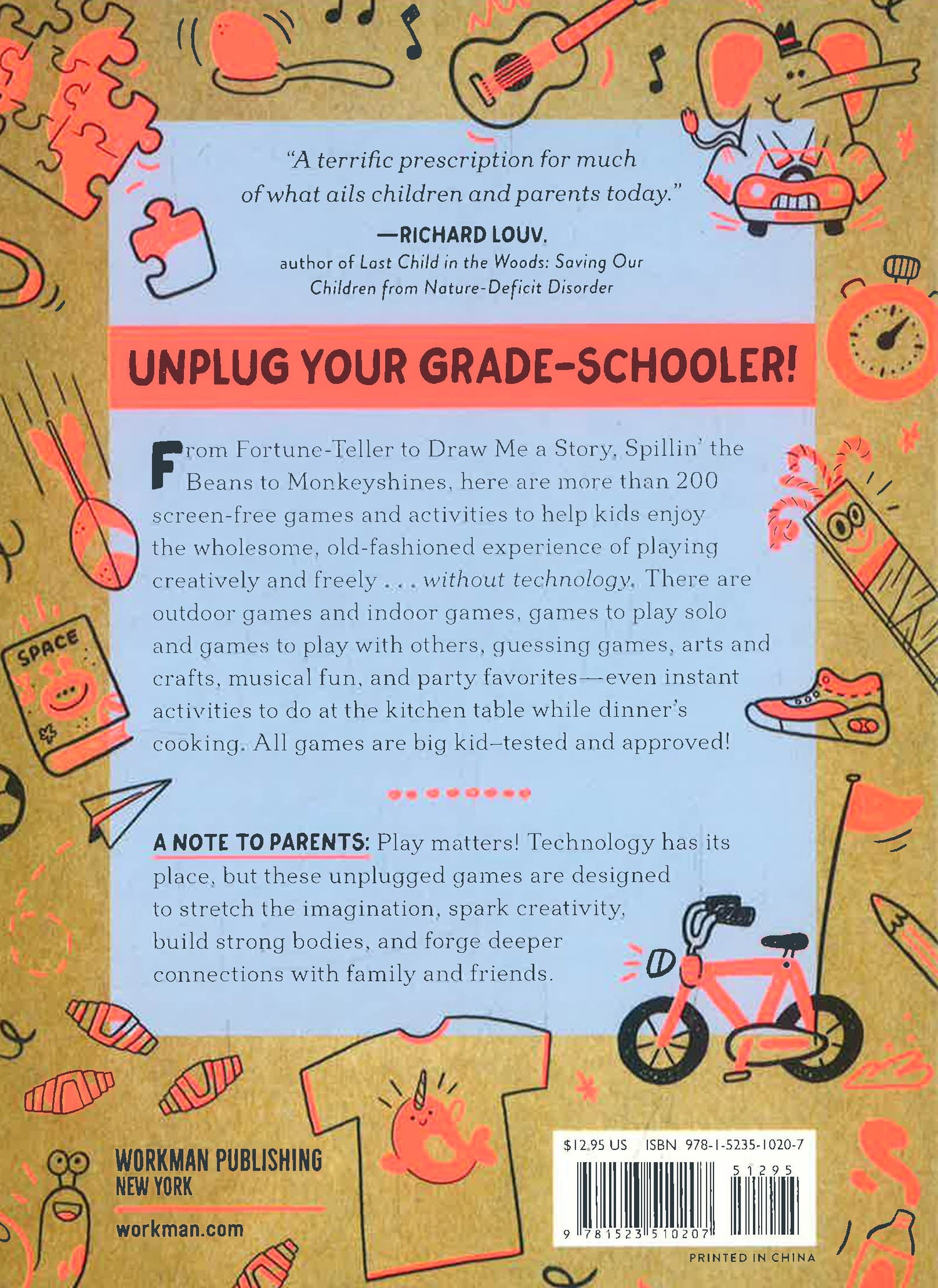 From Fortune-Teller to Draw Me a Story, Spillin’ the Beans to Monkeyshines, here are more than 200 screen-free games and activities to help kids enjoy the wholesome, old-fashioned experience of playing creatively and freely... without technology. There are outdoor games and indoor games, games to play solo and games to play with others, guessing games, arts and crafts, musical fun, and party favorites––even instant activities to do at the kitchen table while dinner’s cooking. All games are big kid-tested and approved!