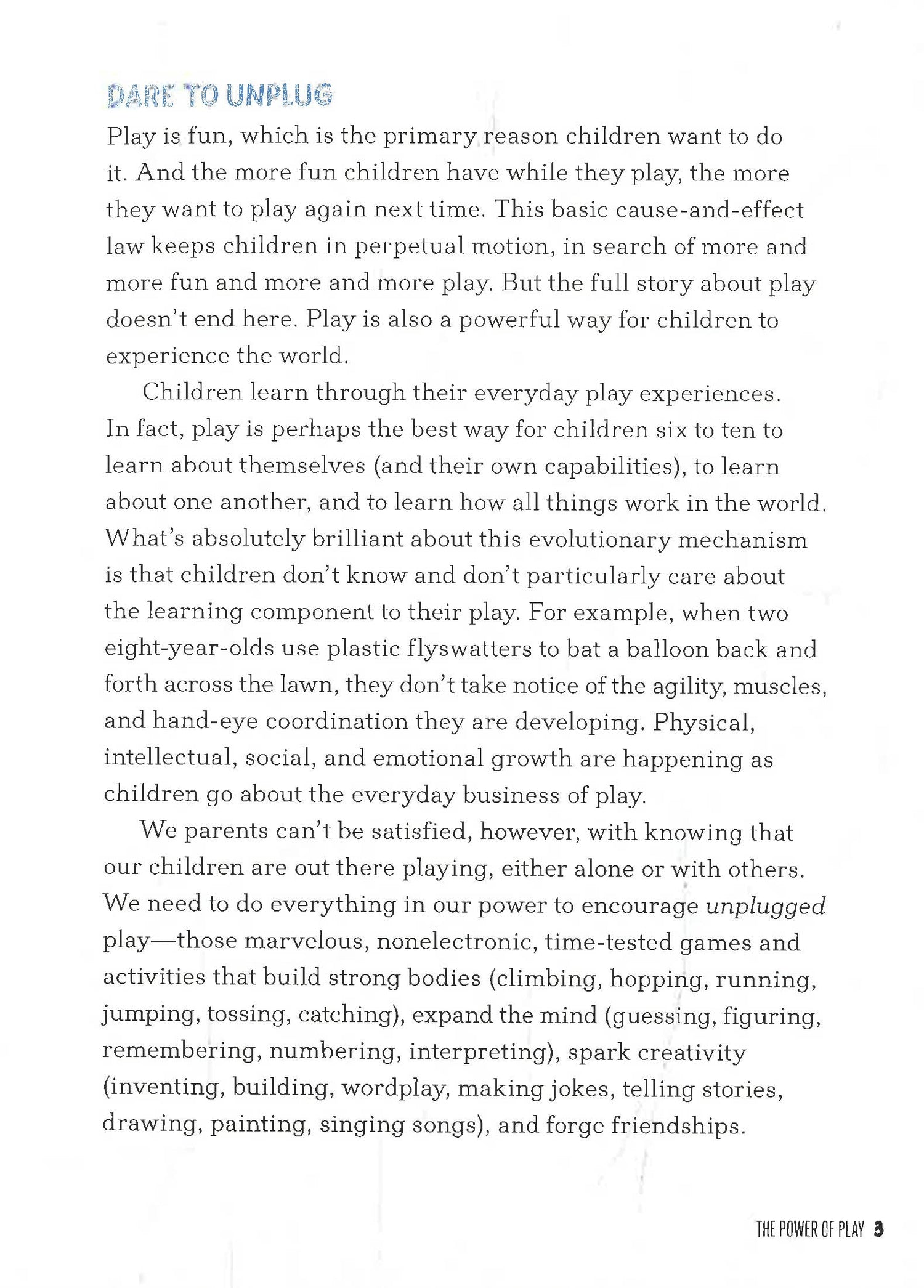 Play matters! Technology has its place, but these unplugged games are designed to stretch the imagination, spark creativity, build strong bodies, and forge deeper connections with family and friends.