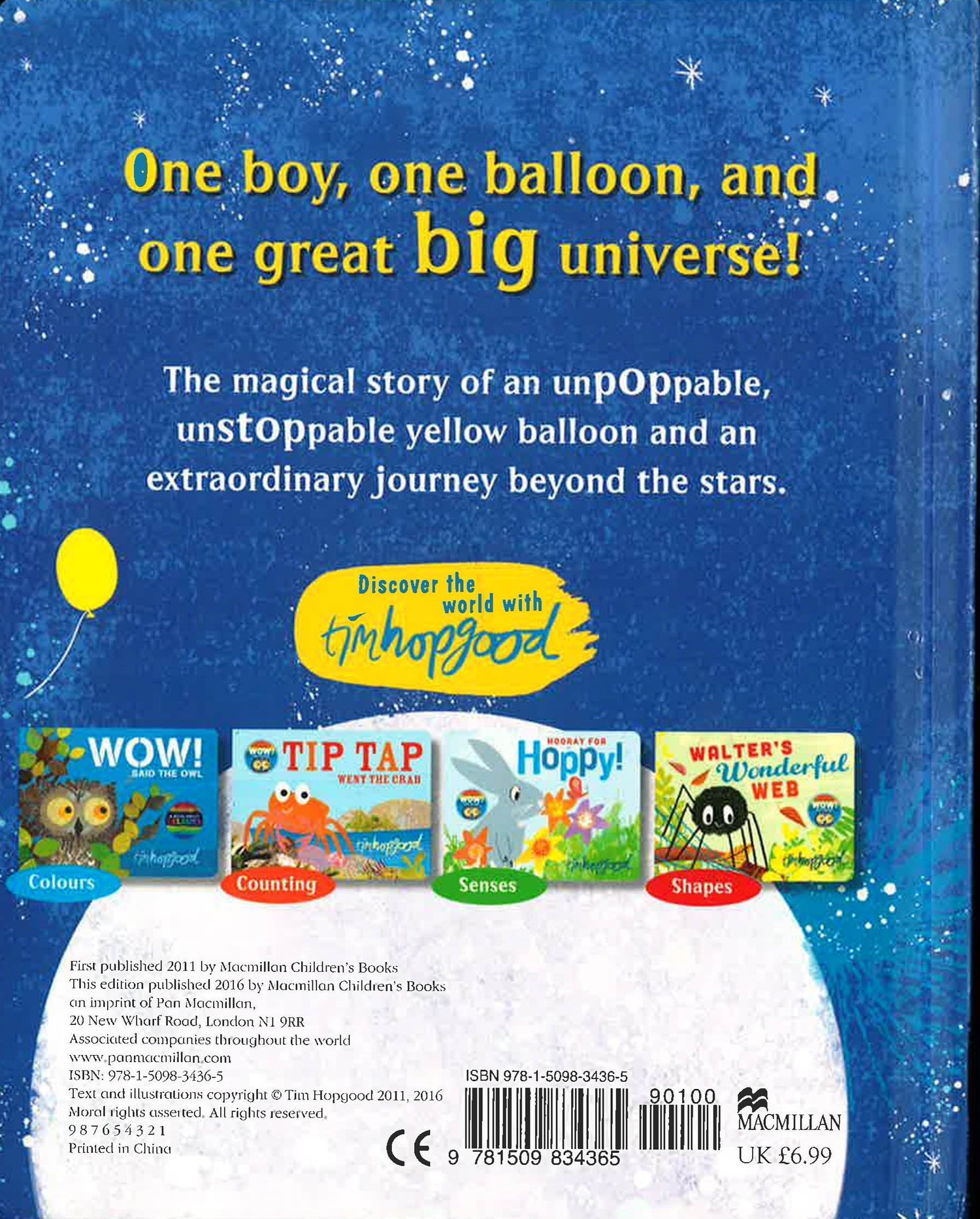 "It's unpOppable!" said the boy, as he stood on his big yellow balloon. UnpOppable, by the award-winning Tim Hopgood, is the magical story of an unpOppable, unstOppable yellow balloon and an extraordinary journey beyond the stars. But what goes up must come down - and with a big bang!