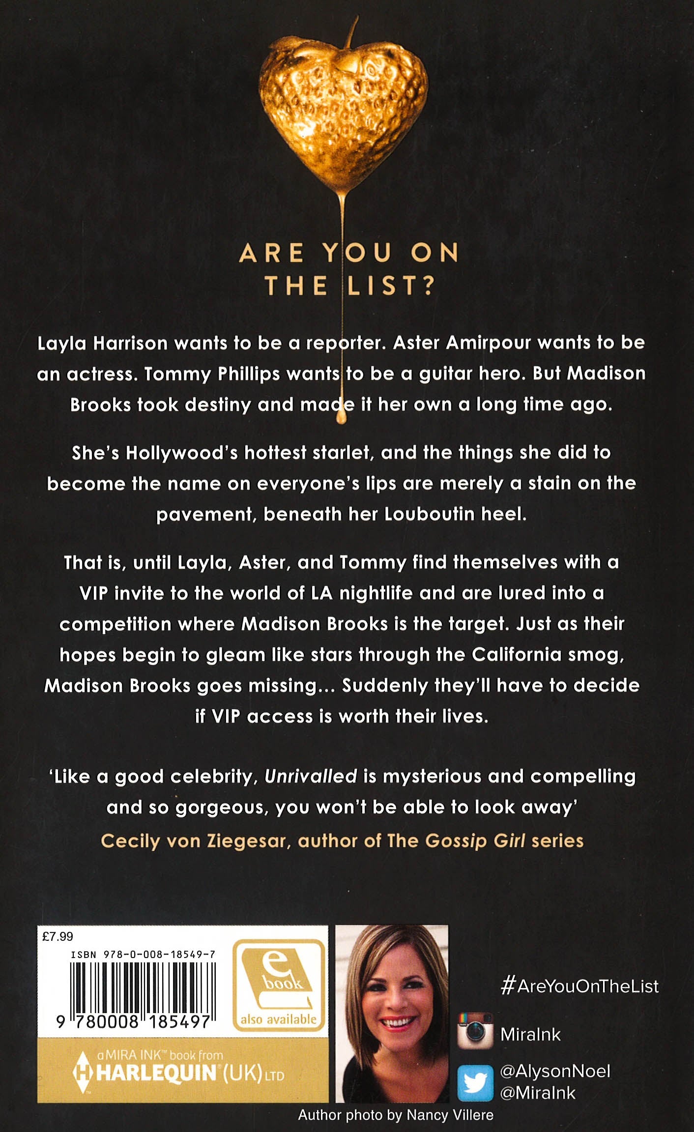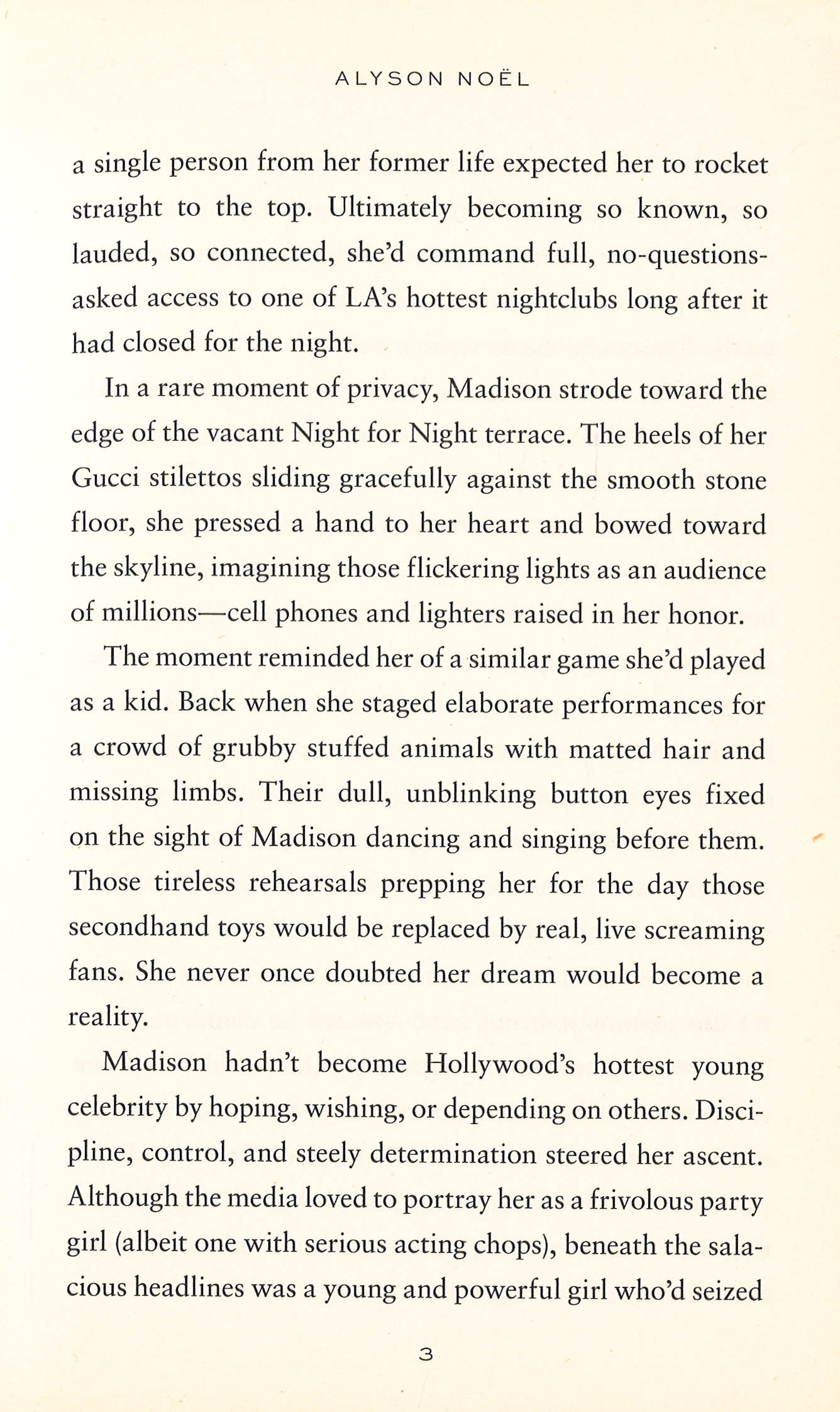 Bestselling author Alyson Noel brings you the high energy, glamorous, and murderous world of the Beautiful Idols. Go behind the velvet rope to the gritty LA club scene where anything goes, and mystery is around every corner. `A frothy, smart and fun read. Heat magazine Welcome to the party EVERYONE wants to be someone. Layla Harrison wants to be a reporter.Aster Amirpour wants to be an actress.Tommy Phillips wants to be a guitar hero.But Madison Brooks took destiny and made it her own a long time ago. She's Hollywood's hottest starlet, and the things she did to become the name on everyone's lips are merely a stain on the pavement, ground beneath her Louboutin heel. That is, until Layla, Aster, and Tommy find themselves with a VIP invite to the world of Los Angeles's nightlife and are lured into a competition. The prize, or rather the target? Madison Brooks. Just as their hopes begin to gleam like stars through the California smog, Madison Brooks goes missing. . . . And all of their hopes are blacked out in the haze of their lies.