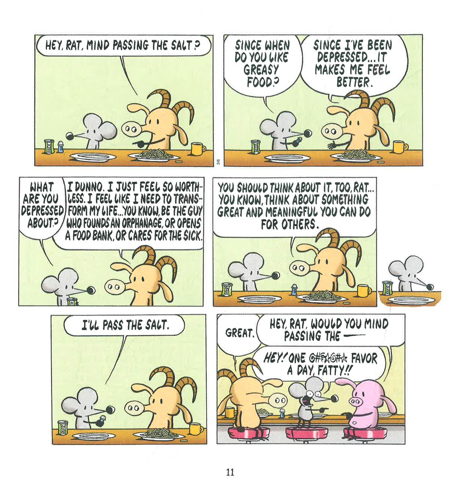 Smart, sharp, and sometimes painfully honest, Pearls Before Swinemocks the flaws and shortcomings of human nature with cynical humour. Pearls Before Swineis the hilarious comic strip tale of two friends: arrogant, egotistical Rat who thinks he knows it all and slow-witted Pig who is painfully naive. Together with Zebra, the activist, Goat, the reluctant brain, and the carnivorous Crocs, it offers pointed commentary on humanity's pitiable plight.