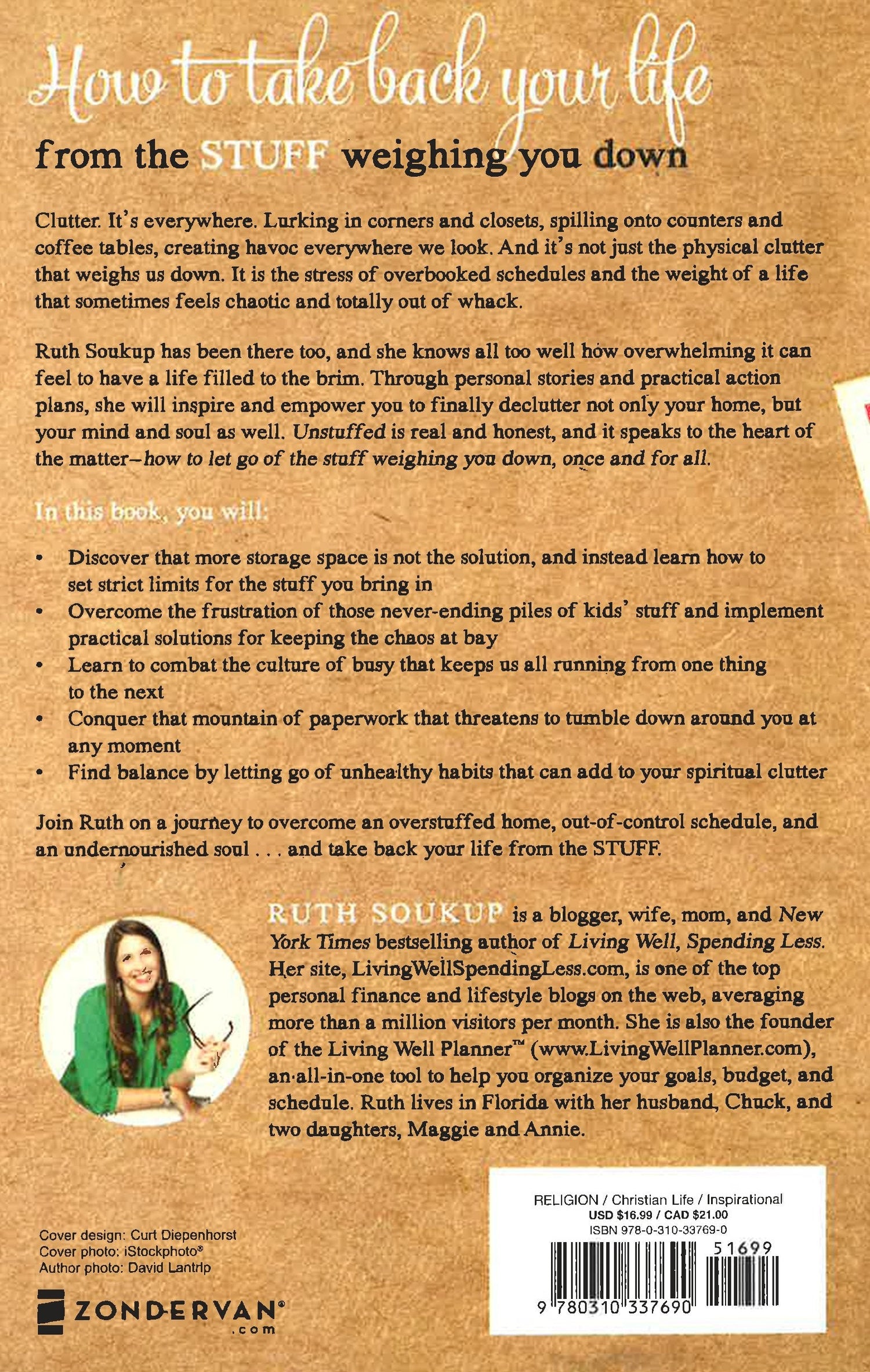 New York Times bestselling author Ruth Soukup feels your pain--she has been there too. Through personal stories, Biblical truth, and practical action plans, she will inspire and empower each of us to finally declutter not just our home, but our mind and soul as well. Unstuffed is real, honest, and gets right down to the question we are all facing--how can we take back our lives from the stuff that is weighing us down?