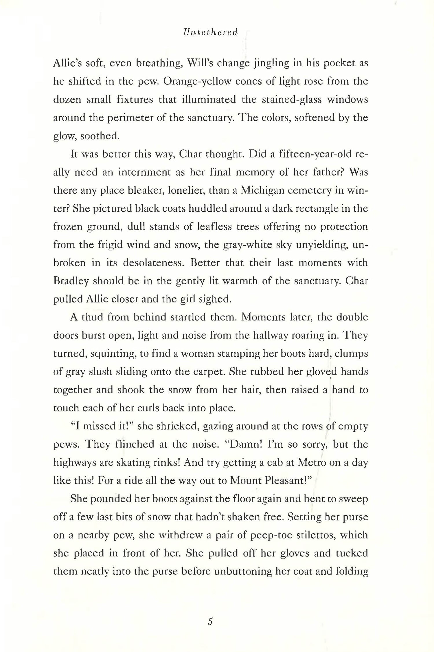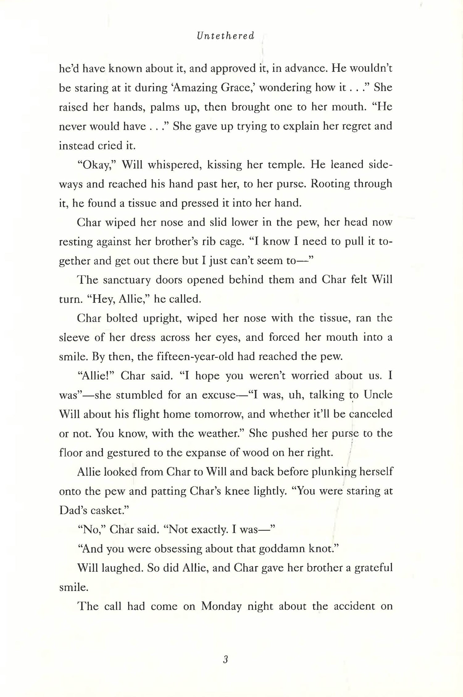 When Char Hawthorn's husband dies unexpectedly, she is left questioning everything she once knew to be true: from the cozy small town life they built together to her relationship with her stepdaughter, who is suddenly not bound to Char in any real way. Untethered explores what bonds truly form a family and how, sometimes, love knows no bounds. Char Hawthorn, college professor, wife and stepmother to a spirited fifteen-year-old daughter, loves her family and the joyful rhythms of work and parenting. But when her husband dies in a car accident, the "step" in Char's title suddenly matters a great deal. In the eyes of the law, all rights to daughter Allie belong to Lindy, Allie's self-absorbed biological mother, who wants to girl to move to her home in California. While Allie begins to struggle in school and tensions mount between her and Char, Allie's connection to young Morgan, a ten-year-old-girl she tutors, seems to keep her grounded. But then Morgan, who was adopted out of foster care, suddenly disappears, and Char is left to wonder about a possible future without Allie and what to do about Morgan, a child caught up in a terrible crack in the system.